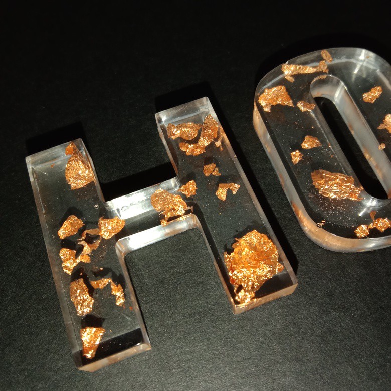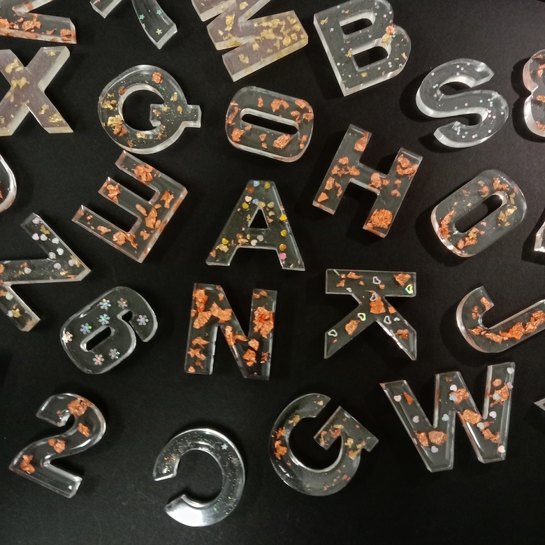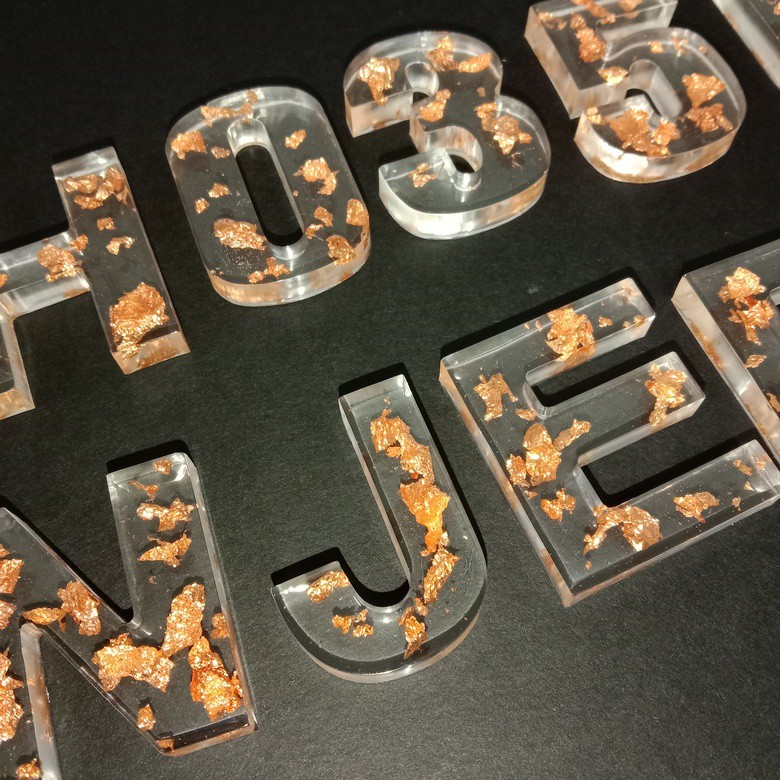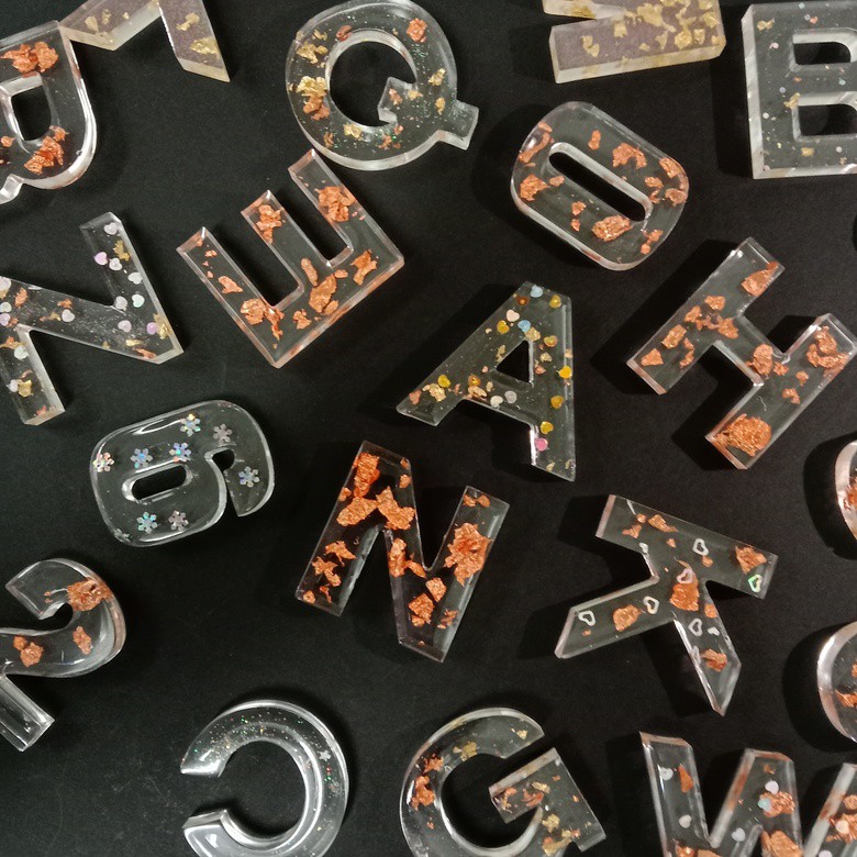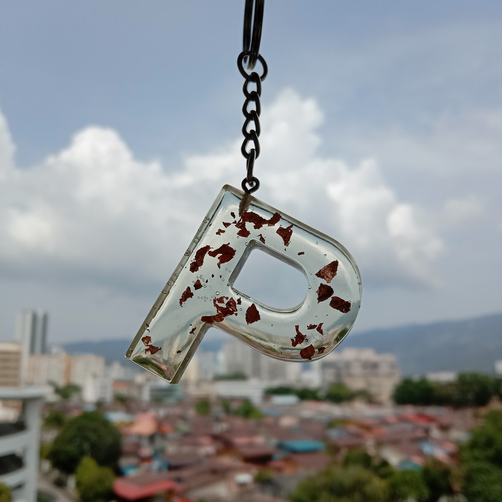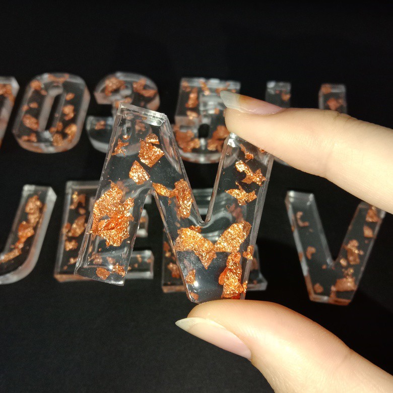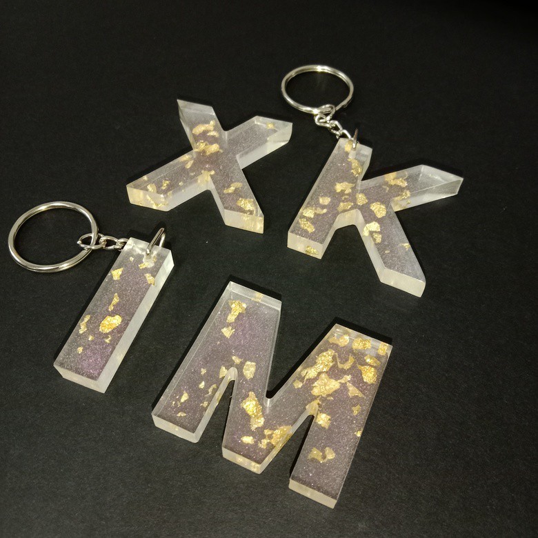 MYC Alphabet Numbers Resin Keychains Handmade Customized Epoxy Keychains Cantik Rantai Kunci Nama Nombor daun emas gold