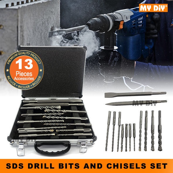 MYDIYHOMEDEPOT - 13PCS SDS DRILL BIT SET AND CHISEL SET SDS PLUS DILL BIT FOR ROTARY HAMMER POWER TOOLS FDW HIGH QUALITY