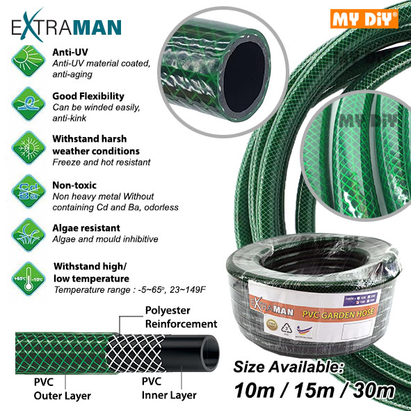 Extraman 10m Reinforced Pvc Rubber Garden Hose Green Garden Hose Pvc Pipe Hose Getah Paip Air 2.5mm