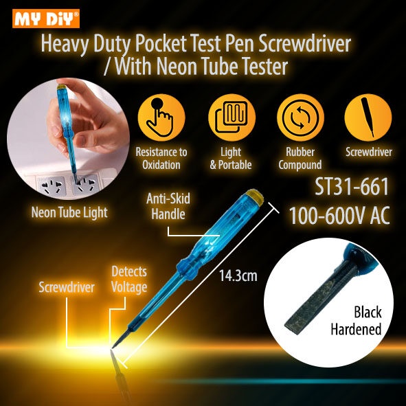 MYDIYHOMEDEPOT - HEAVY DUTY POCKET TEST PEN ELECTRICIAN SPARK DETECTING FLAT HEAD / TESTER SCREWDRIVER With NEON Light