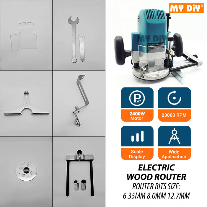 MYDIYHOMEDEPOT - KWSIC ELECTRIC WOOD ROUTER MACHINE 2400W 6.35MM 8.0MM 12.7MM WOOD TRIMMER ROUTER MACHINE PLUNGE ROUTER