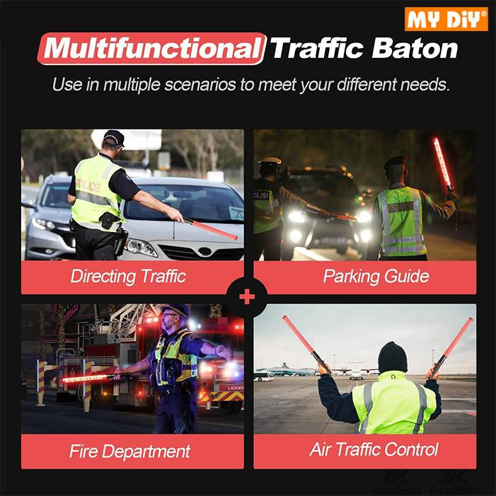 MYDIYHOMEDEPOT - LED Traffic Safety Baton Safety Hand Light Stick Baton Signal Warning Flash Light Constant Light