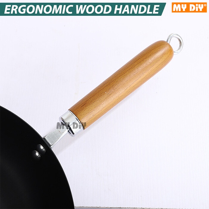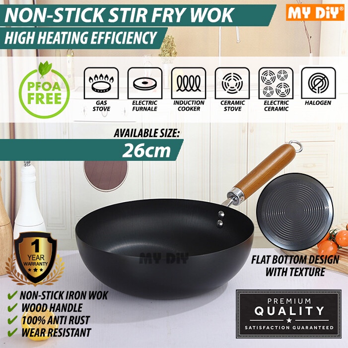 MYDIYHOMEDEPOT - Non Stick Traditional Wok Flat Bottom Wok Pan Stir Fry Wok Pan Fits All Kind of Stove 1 Year Warranty