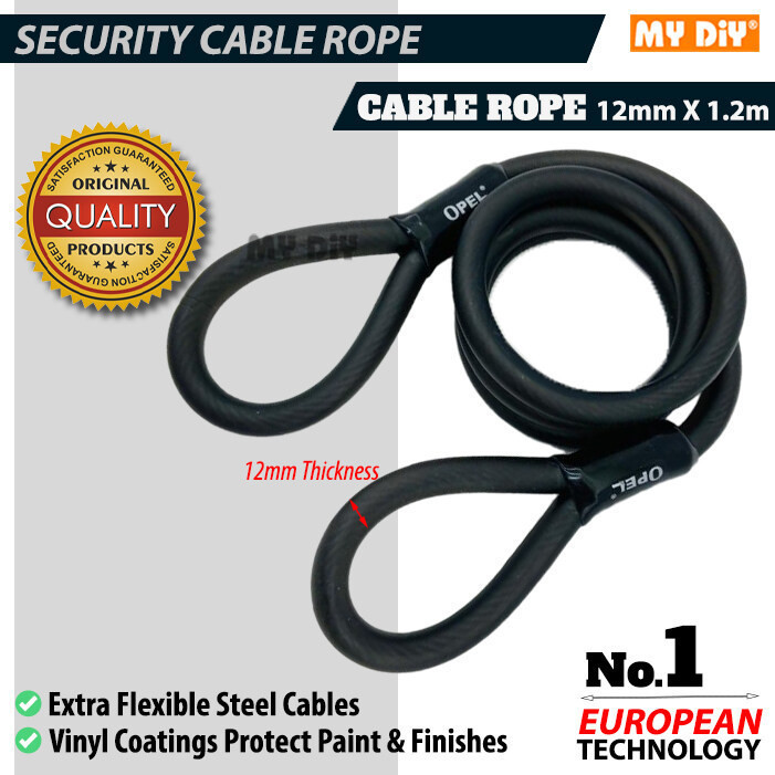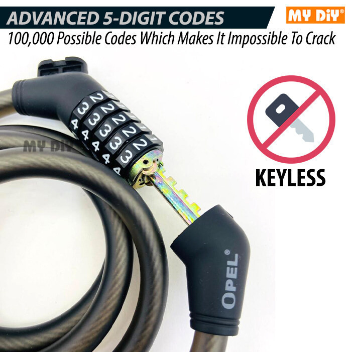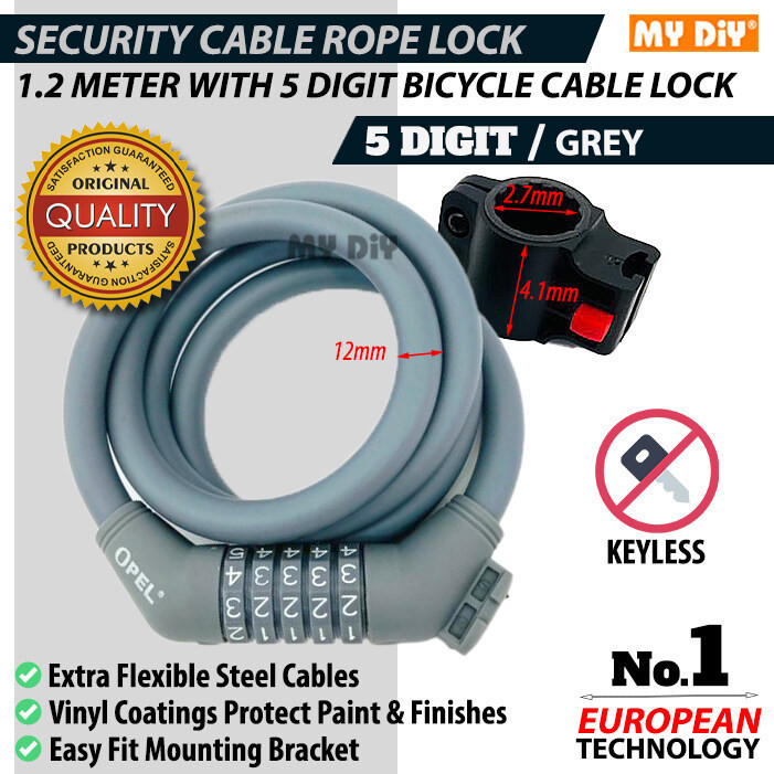 MYDIYHOMEDEPOT - OPEL BRAIDED STEEL SECURITY CABLE ROPE LOCK AND 5 DIGIT BICYCLE CABLE LOCK 1.2M / BYCYCLE DIGIT LOCK