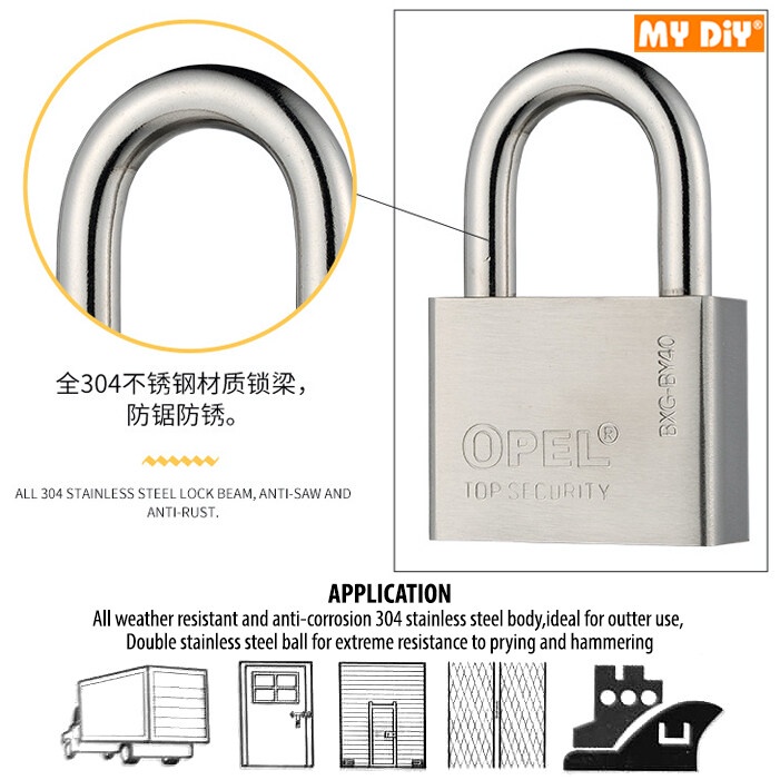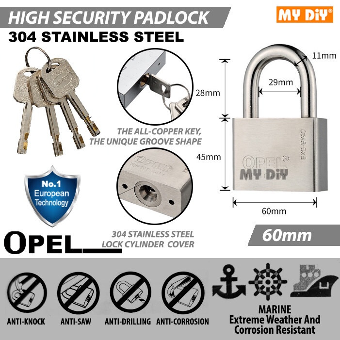 MYDIYHOMEDEPOT - OPEL High Security Marine Grade 304 Stainless Steel PadLock Extreme Weather and Corrosion Resistant
