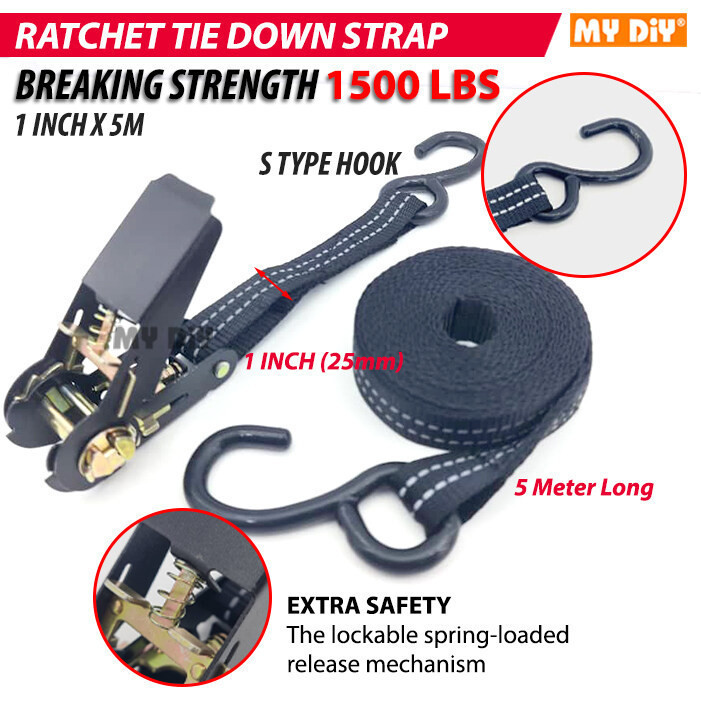MYDIYHOMEDEPOT - RATCHET TIE DOWN STRAP 5M 1500LBS BREAKING STRENGTH CARGO STRAP TIE BELT TALI IKAT BARANG