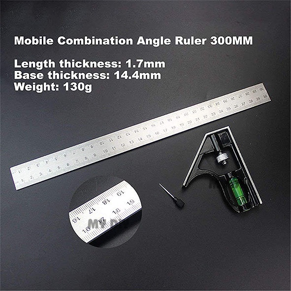 MYDIYHOMEDEPOT - Stainless Steel Combination Square Ruler Level Gauge Angle Metric Ruler Adjustable Angle Ruler 300mm