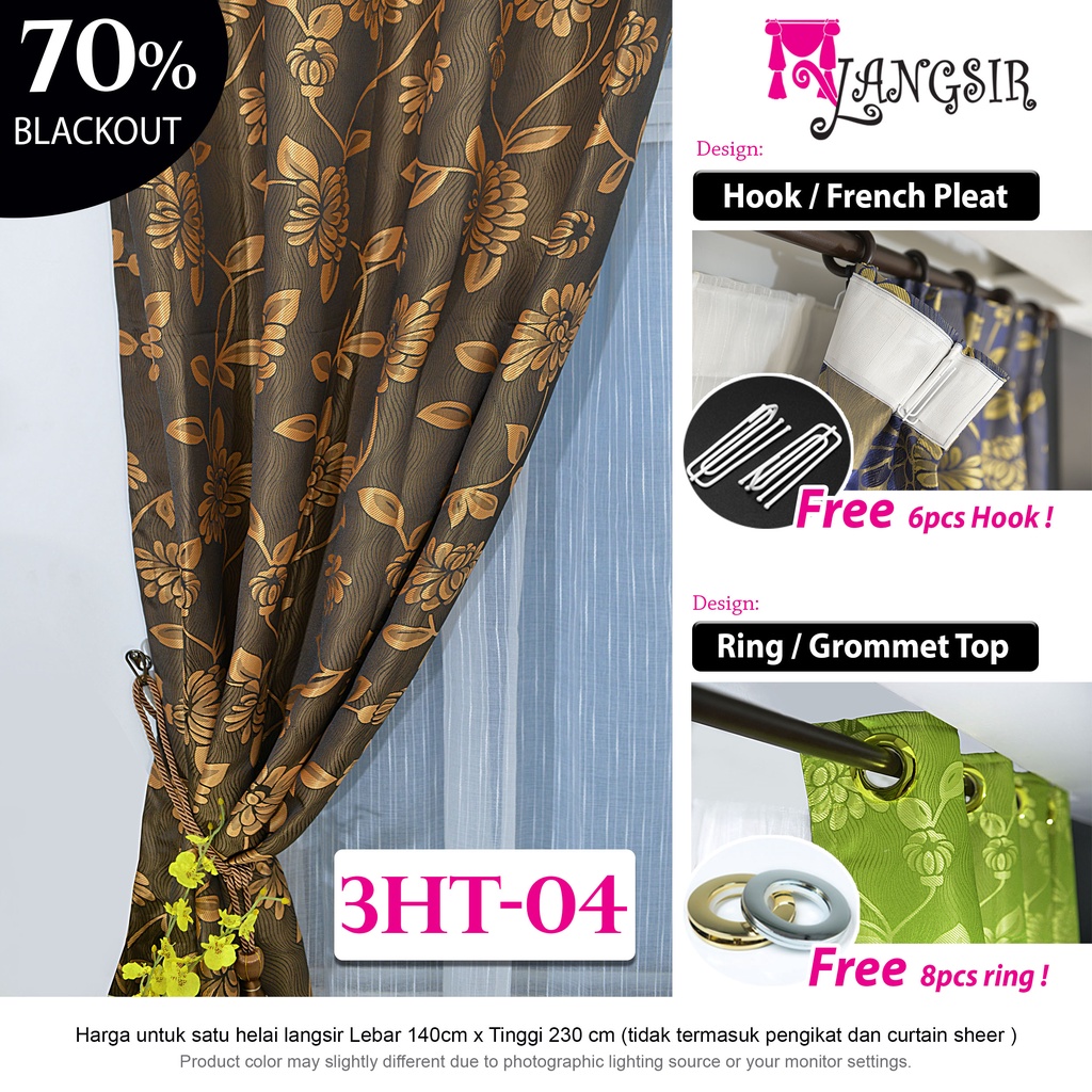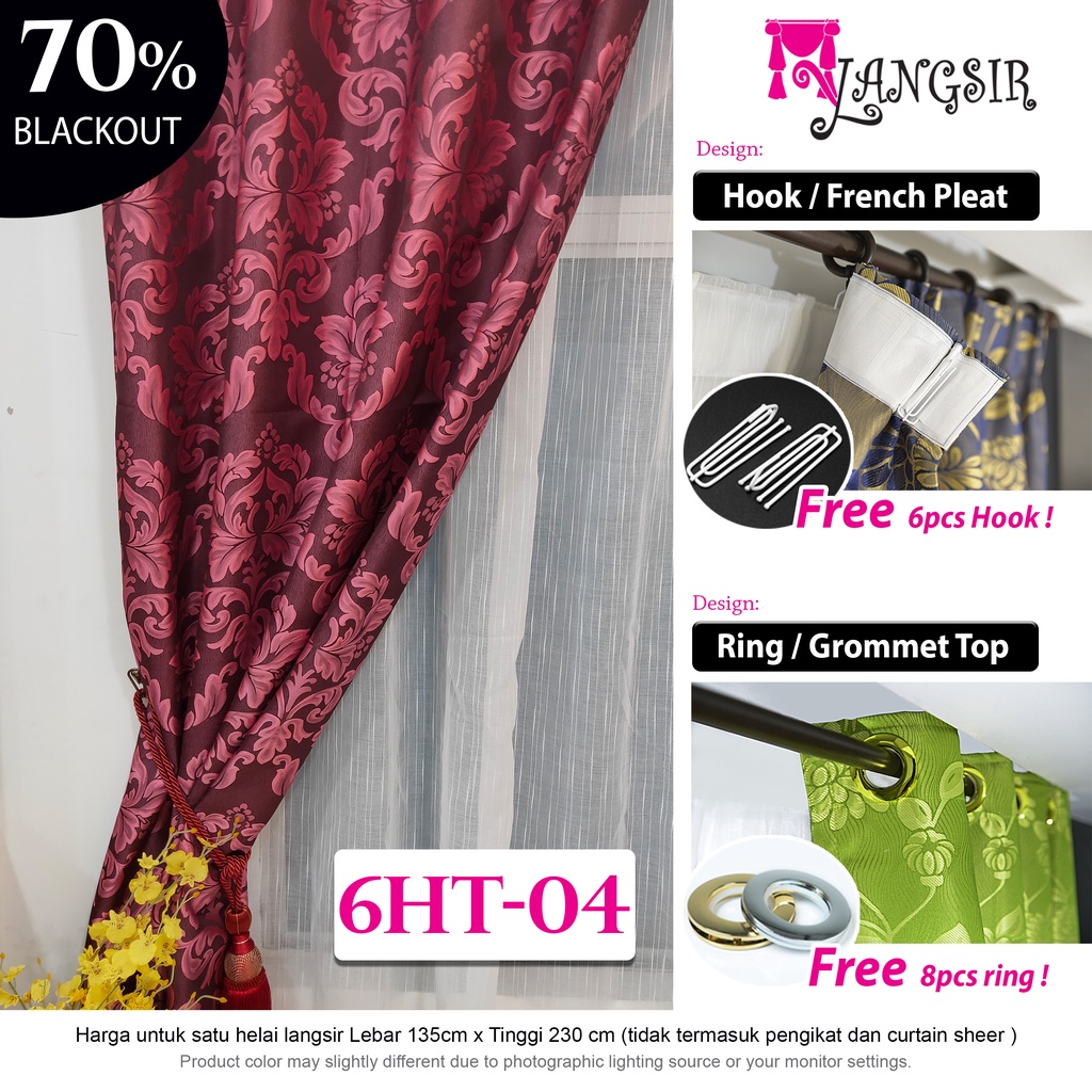 MYLANGSIR Langsir Corak /Curtains Hook or Ring /Langsir Curtain Murah/ Ready Stock