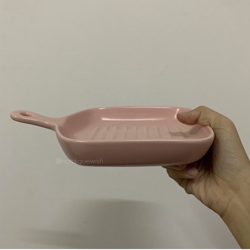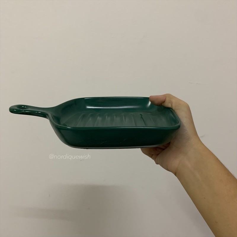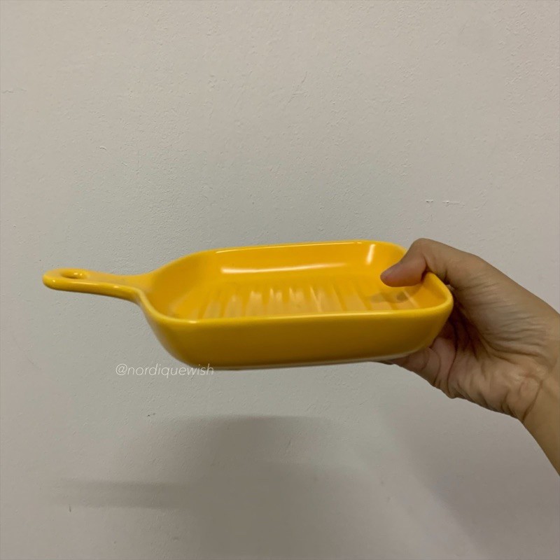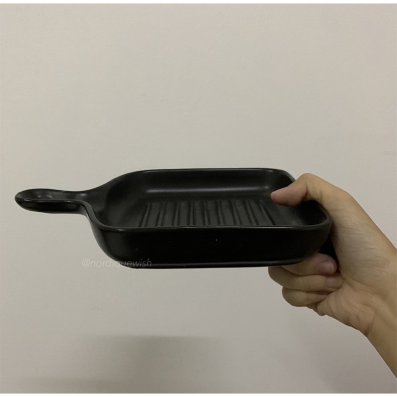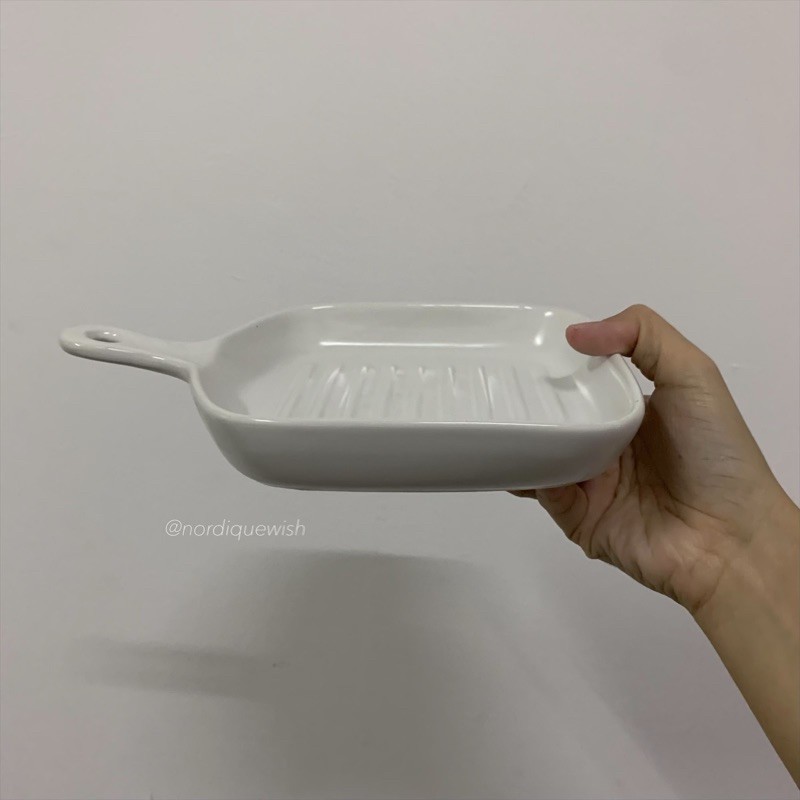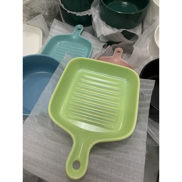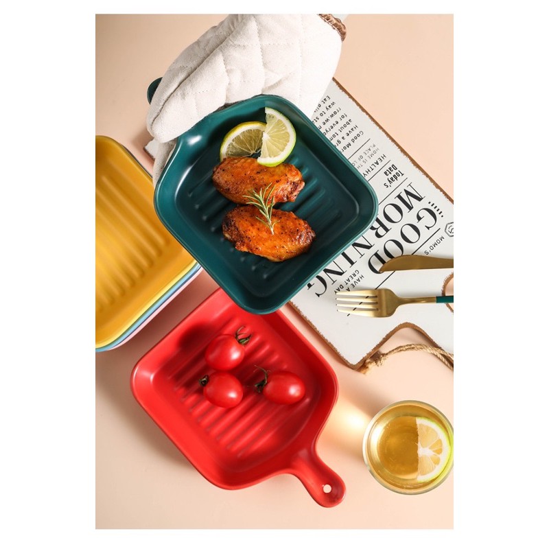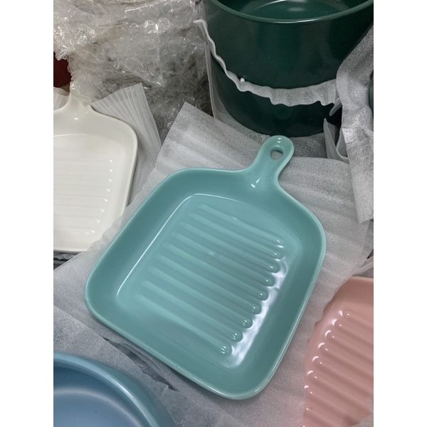 Macaroon Series: Pan-shaped Ceramic Plate with Handle - microwave safe cheese oven bake bowl porcelain
