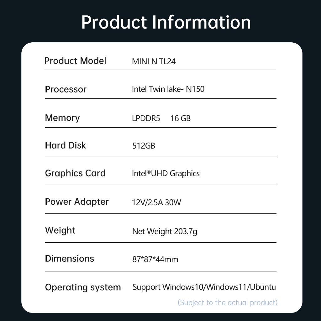 Machenike Mini PC Intel N150 4 Cores CPU 16G LPDDR5 RAM 512G SSD PCIE4.0 Support Bluetooth &WiFi 2025 New Mini Computer Desktop