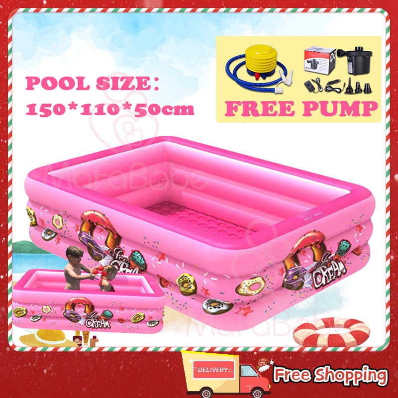 Mafababe Inflatable Swimming Pool 3 Layer Rectangular Inflatable Kids Pool Baby / Family Indoor Outdoor Kolam Renang