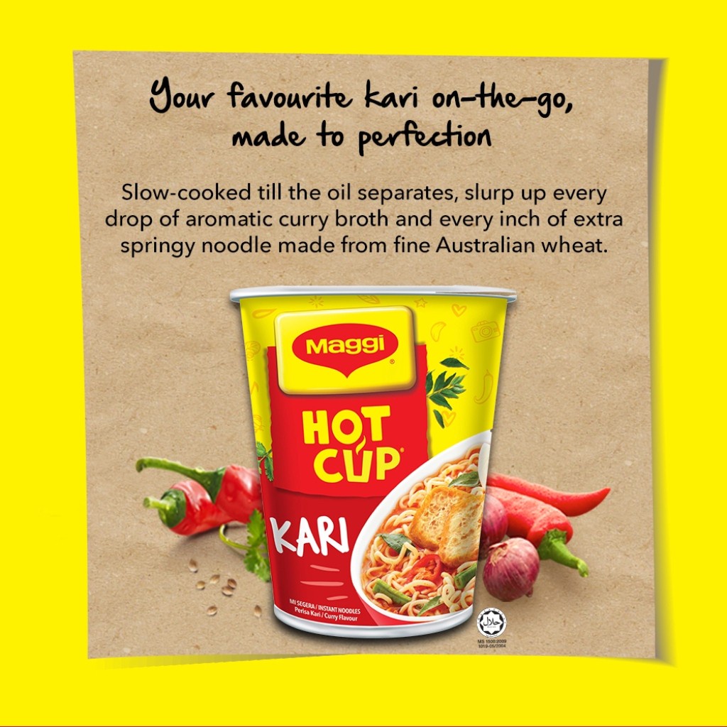 Maggi Cup Kari Instant Noodle Maggie Curry Noodles Hot Meggi Kari Mee Segera Meggi (59g)