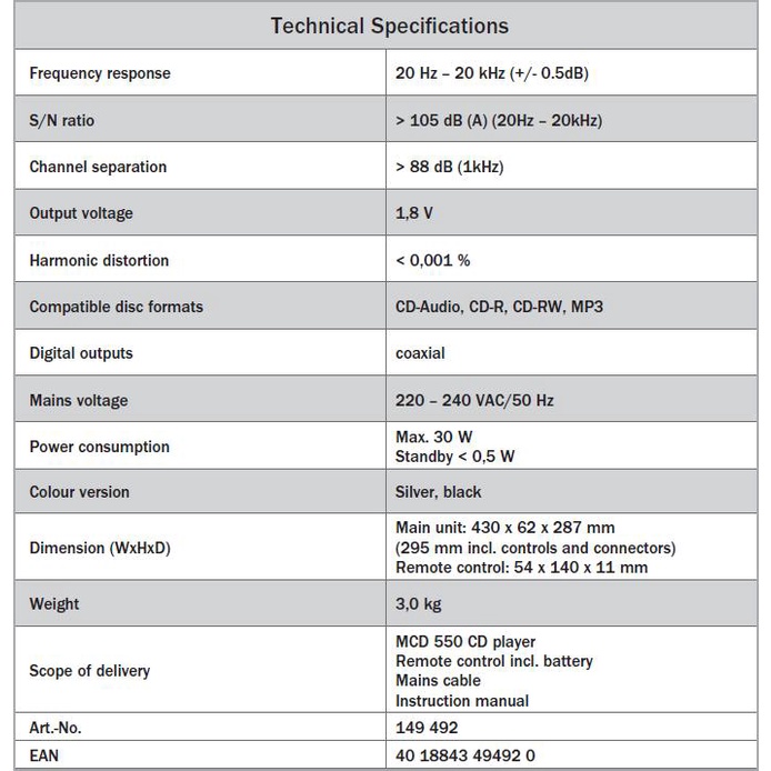 Magnat MCD 550 CD Player With Sanyo Laser (DISPLAY)