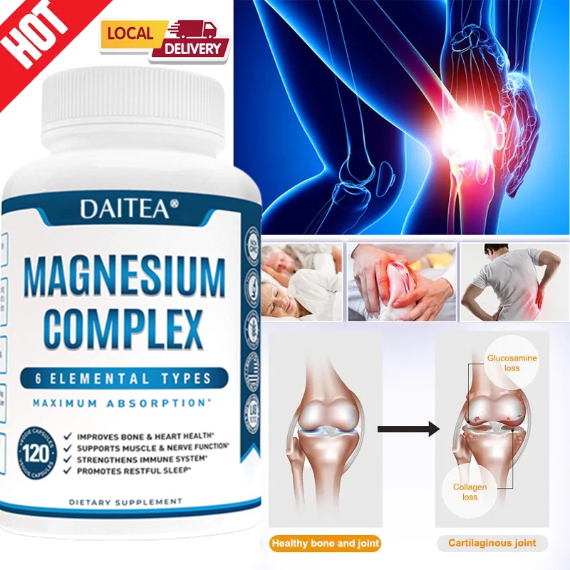 Magnesium Complex Supplement Magnesium Glycinate - , Leg Cramps, Heart, Muscle Relief 120 Capsules