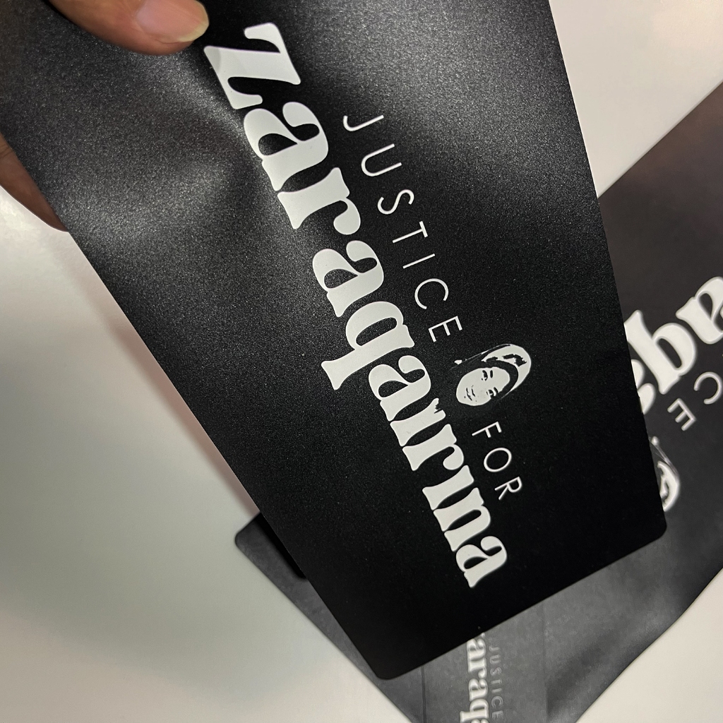 Magnet Kereta Justice For Zara Slogan UV Print Waterproof