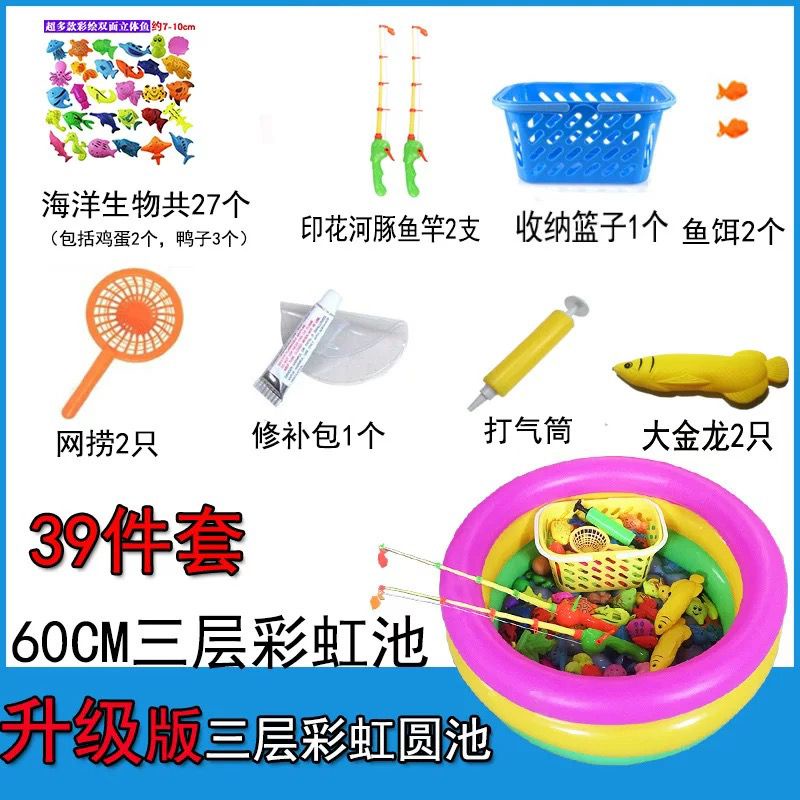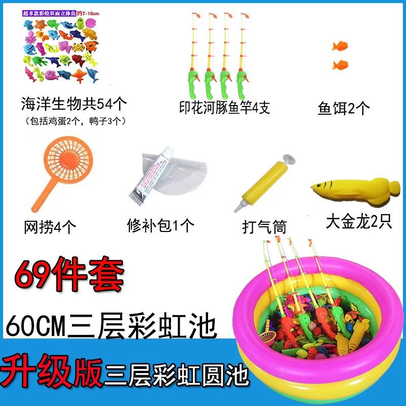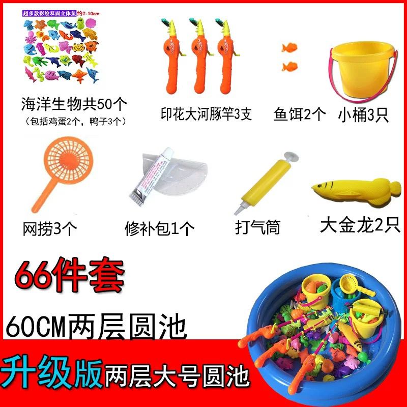 Magnetic Fishing Toy 47pcs 54pcs 66pcs Toys Set with Inflatable Pool Fishing Games Pretend Play Gift