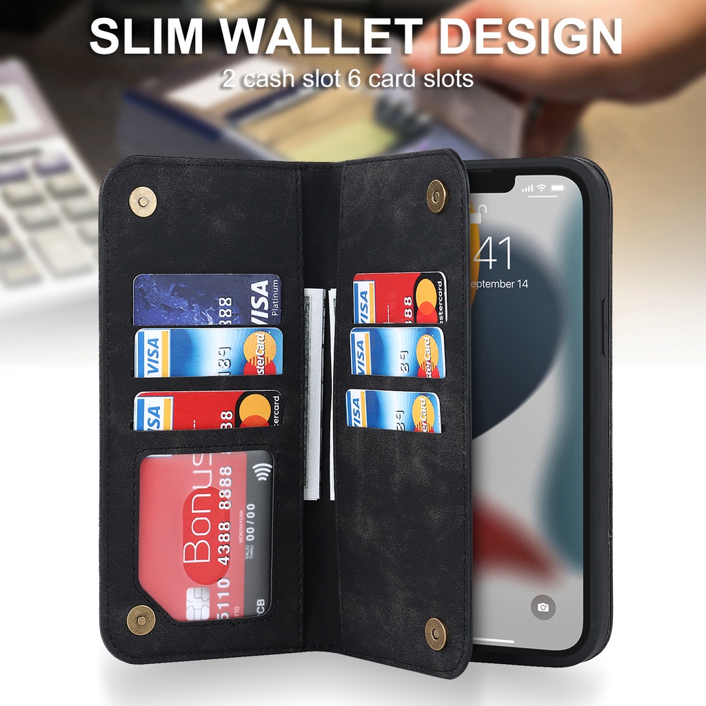 Magnetic Magsfing 6 Cards Wallet Flip Case For iPhone 16 15 14 13 12 11 Pro Max X XR XS 7 8 Plus Casing Leather Luxury Multifunction Shockproof PC + TPU Card Holder Book Cover