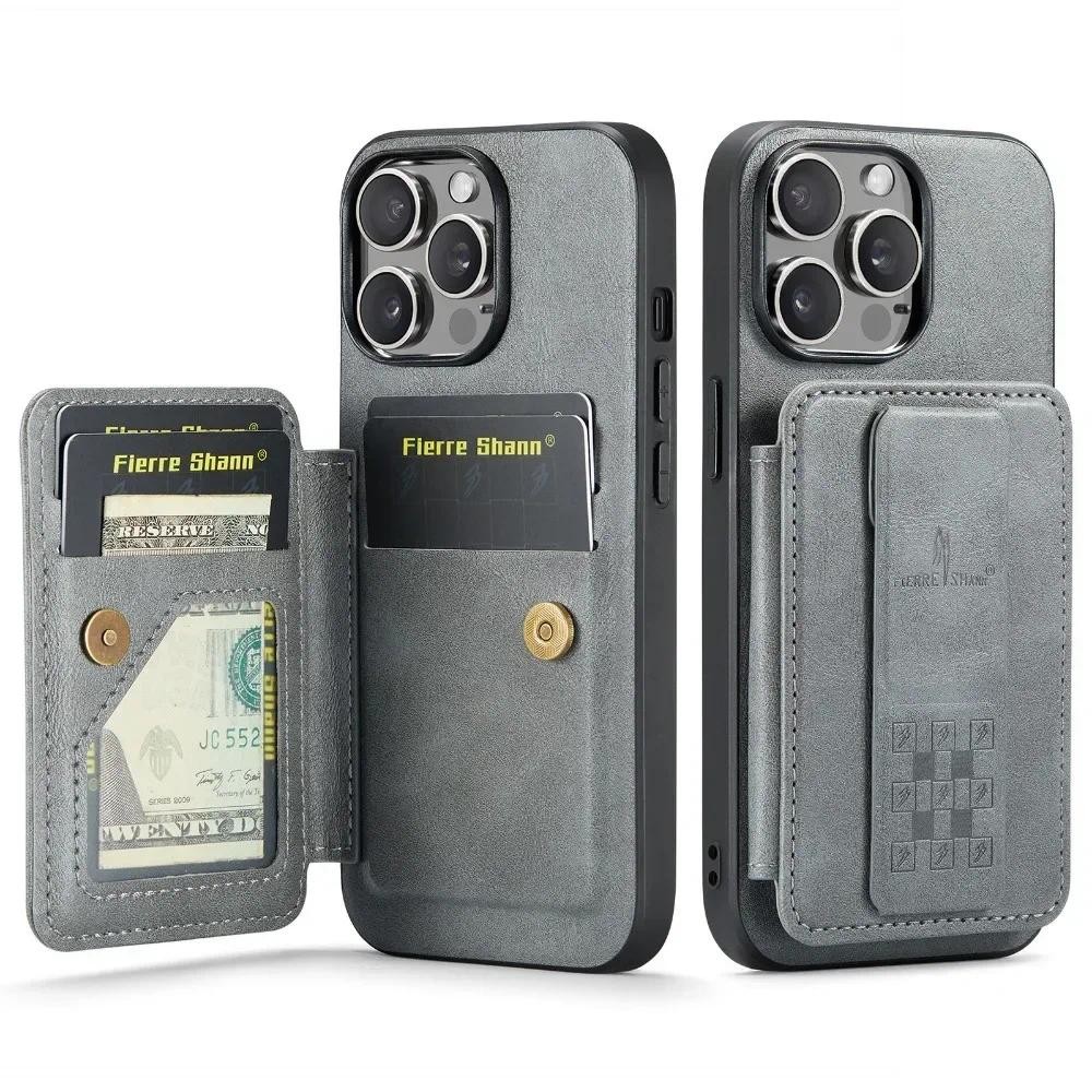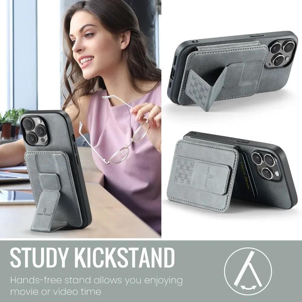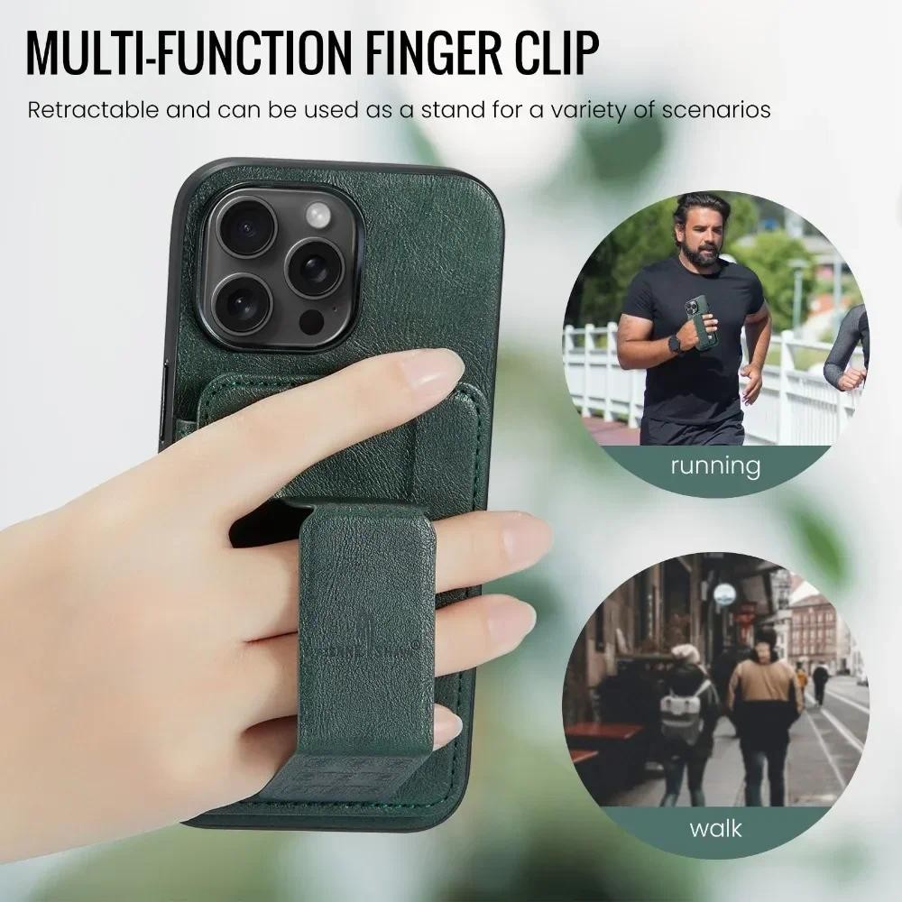 Magnetic Retractable RFID Blocking Card Holder Wallet Case For iPhone 16 Pro Max 15 14 Plus 13 12 11 Magnetic Retractable Wristband PU Leather Cover