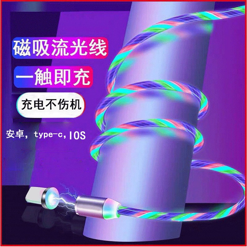 Magnetic Streamer Data Cable Colorful Glowing Fast Charging Android Apple Universal Charging Cable