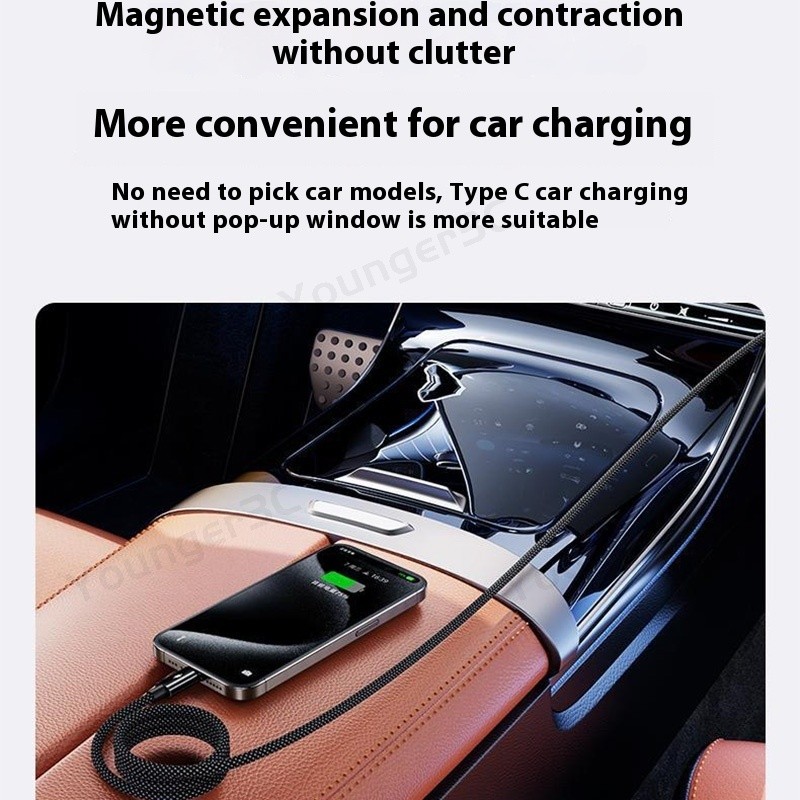 Magnetic Suction Anti Bending Dual Type C Data Cable 100W Super fast charging usb to type c cable Self winding self storage weave car charger cable ios15