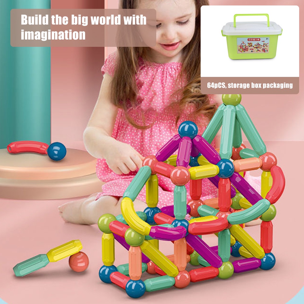 Magnetic Toys Kids Magnetic Stick Balls Building Blocks toy With Storage Box 3D Geometry Learning Sensory Construction