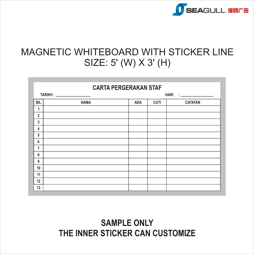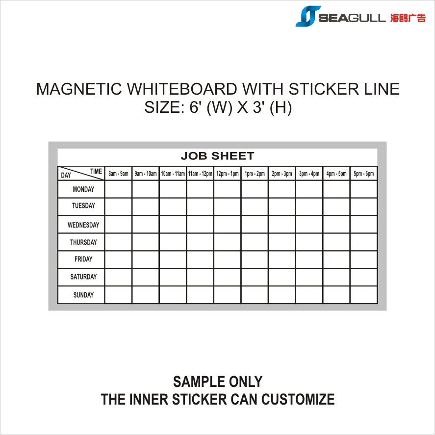 Magnetic Whiteboard With Sticker Line (customized) Size: 2x3 / 3x4 /4x6 /4x8 Daily Schedule Planner