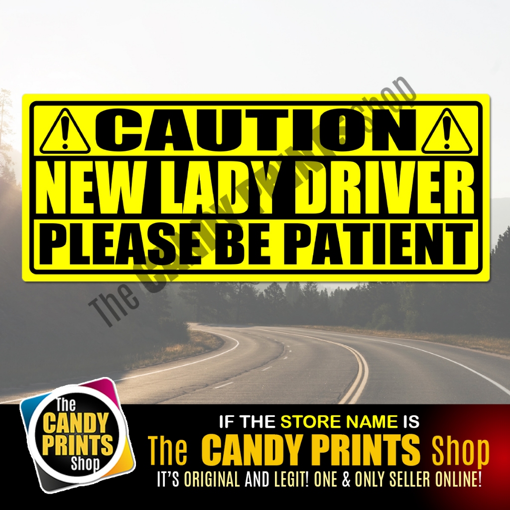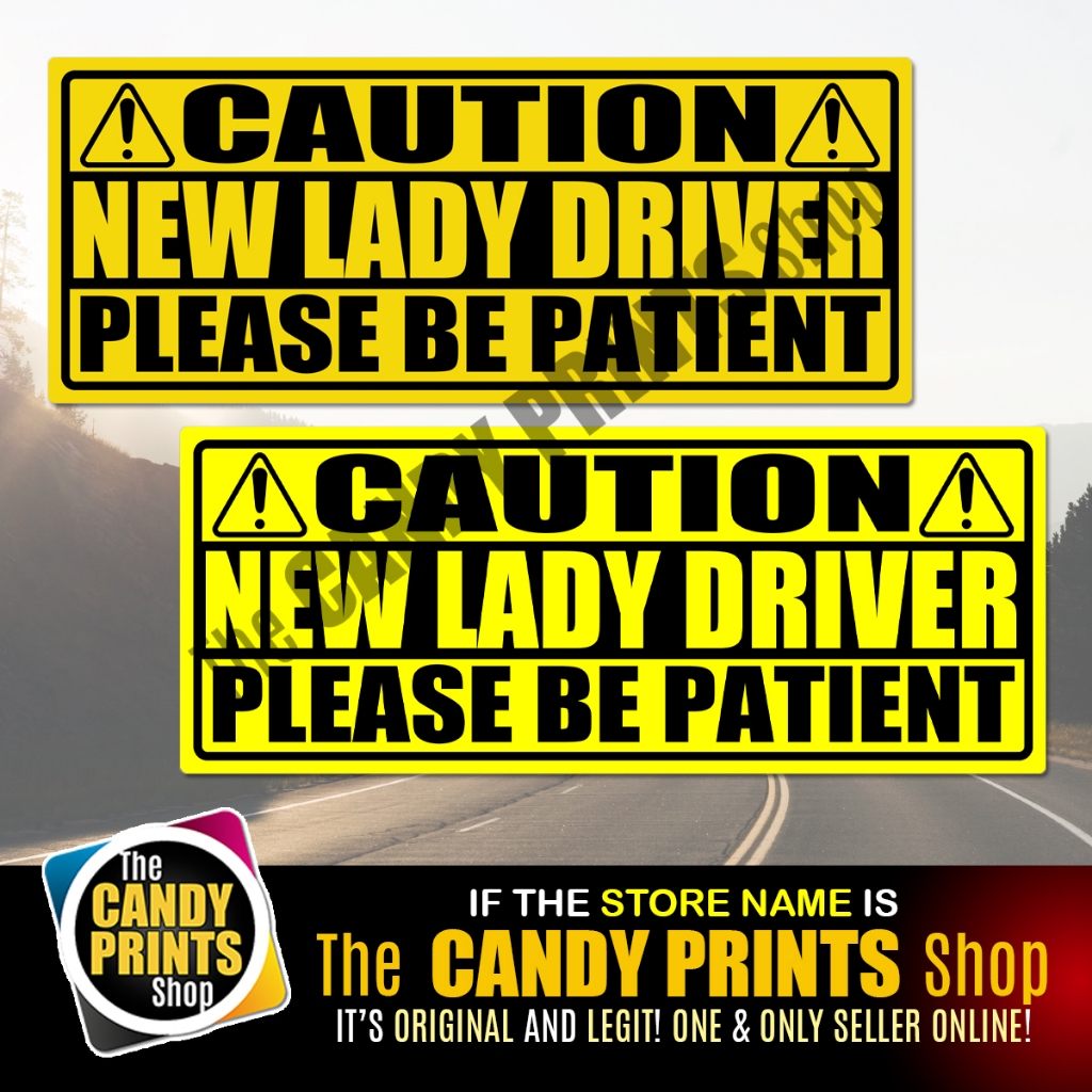 Magnetic and Vinyl Car Sticker (CAUTION - NEW LADY DRIVER - PLEASE BE PATIENT) - 10 x 4 inches