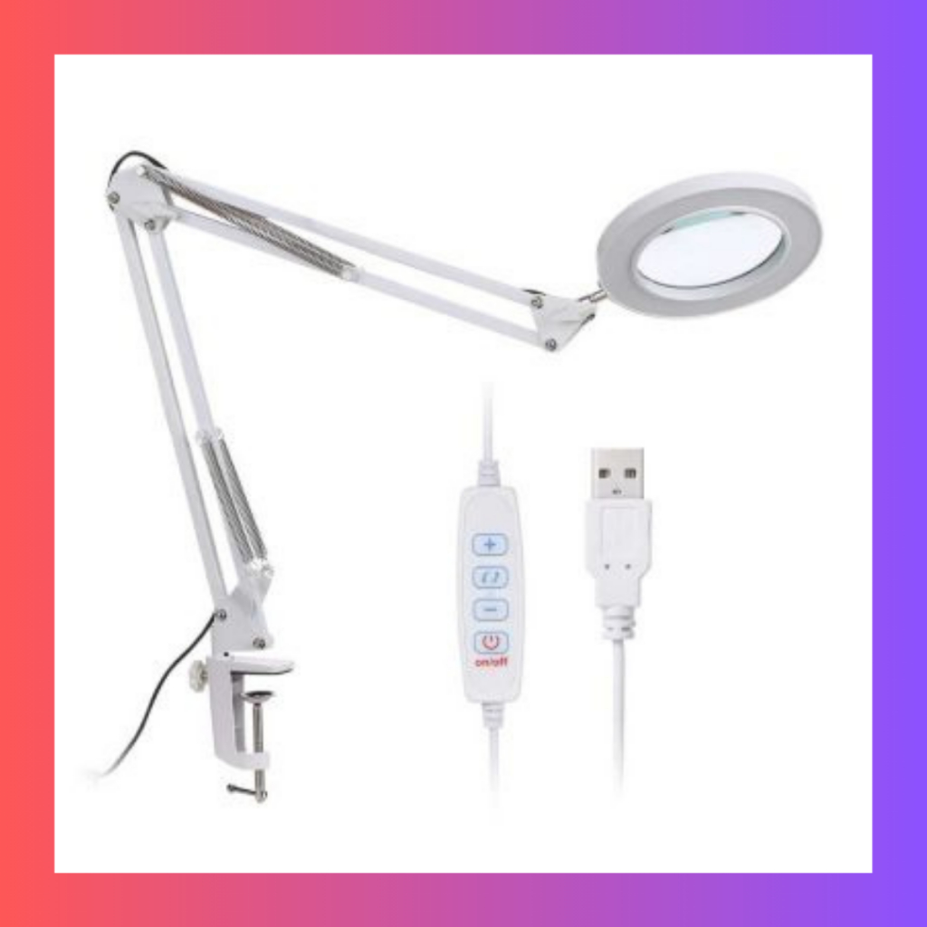 Magnifying Glass Magnifier with LEDs Clamp Clip Light 8X Magnification 10 Levels Adjustable Brightness Dimmable 3 Colors