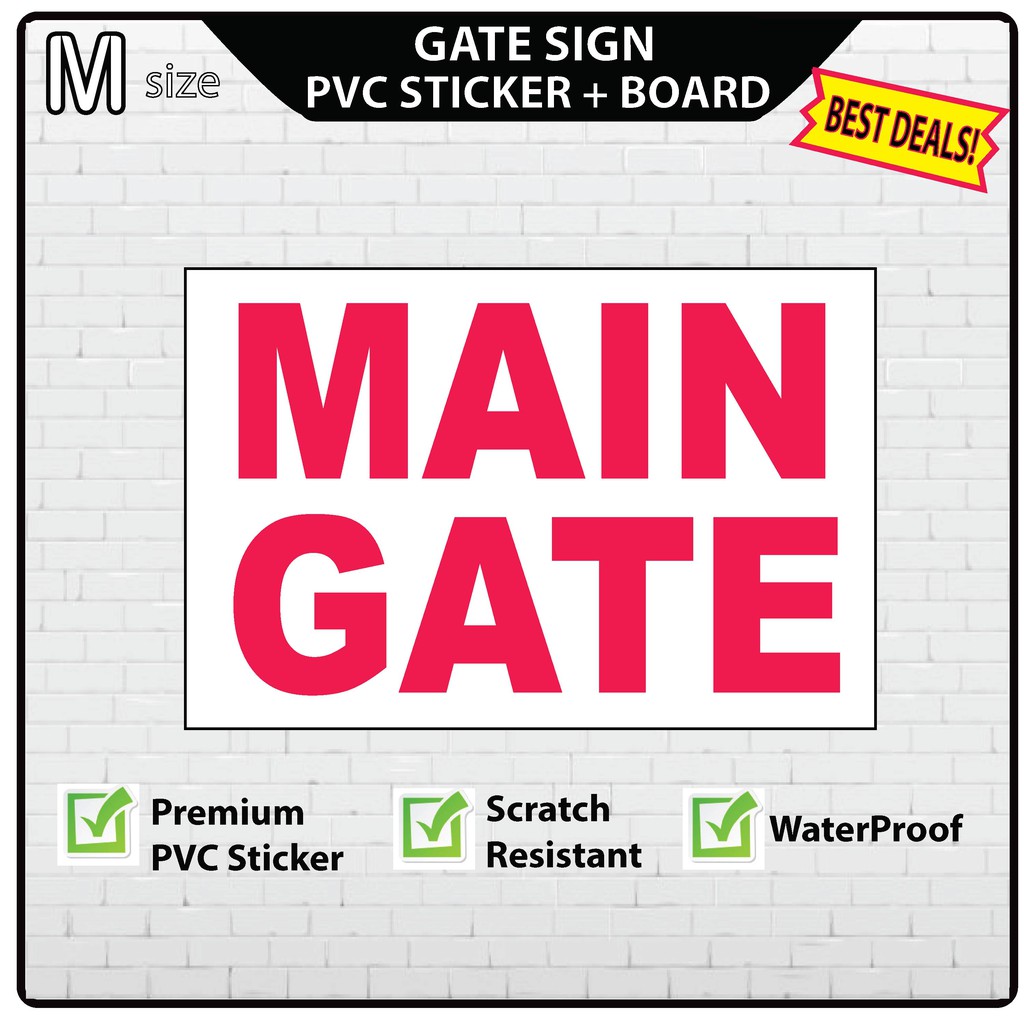 Main Gate, Gate 2 Sign ( Sticker Only, Sticker With Board