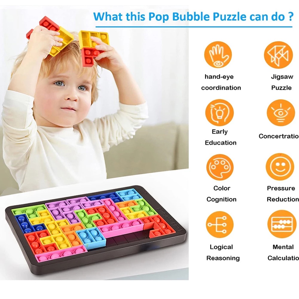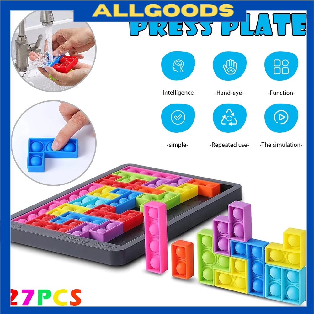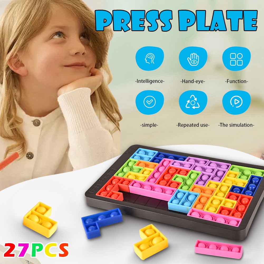 Mainan Budak Pop it Tetris 27pcs Pop It Jumbo Puzzle Fidget Toy Rainbow Pop it Game Board Bubble Fidget Sensory Toy Gift