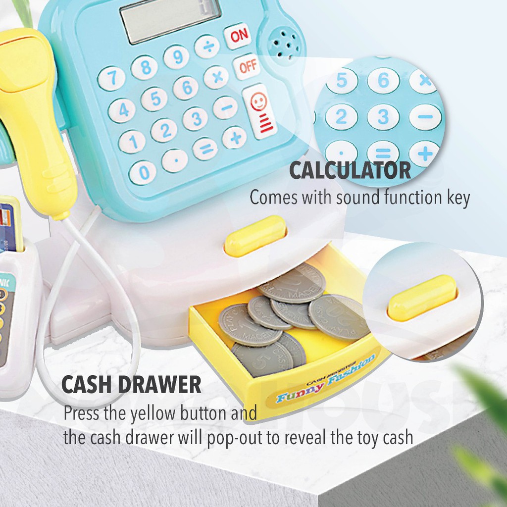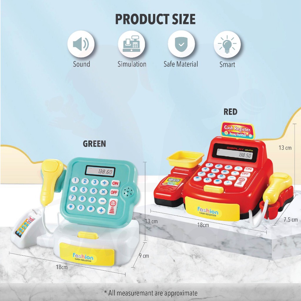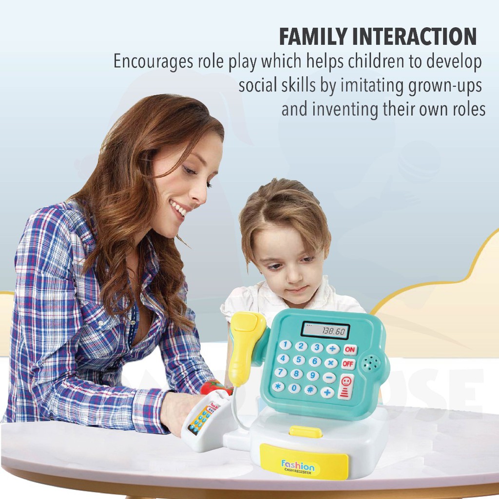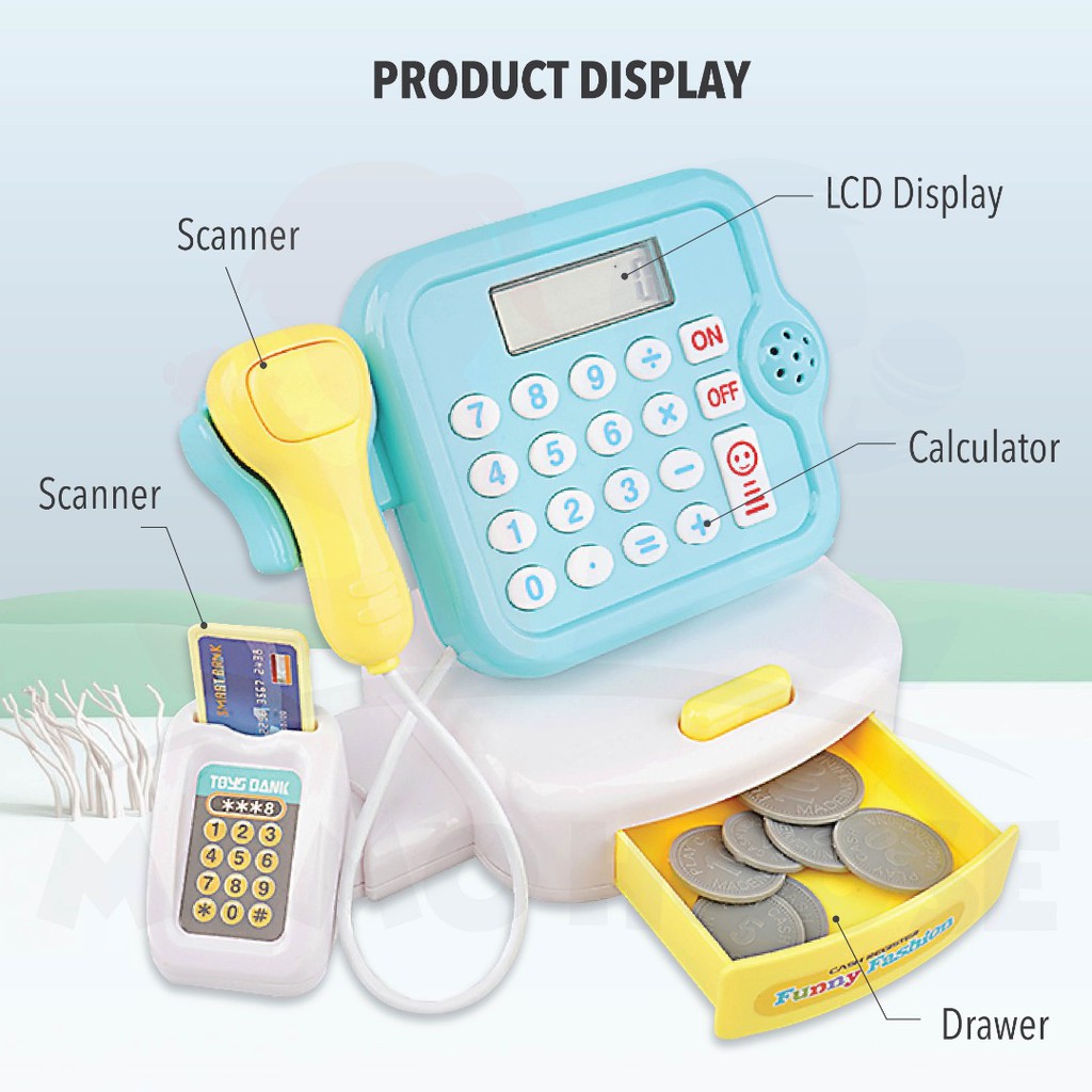 Mainan Kanak-Kanak MESIN DUIT Cash Register Set Pretend Toys Supermarket Cashier Toys With Sound & Light
