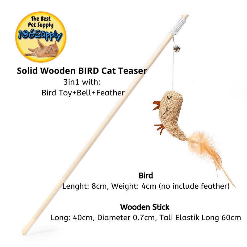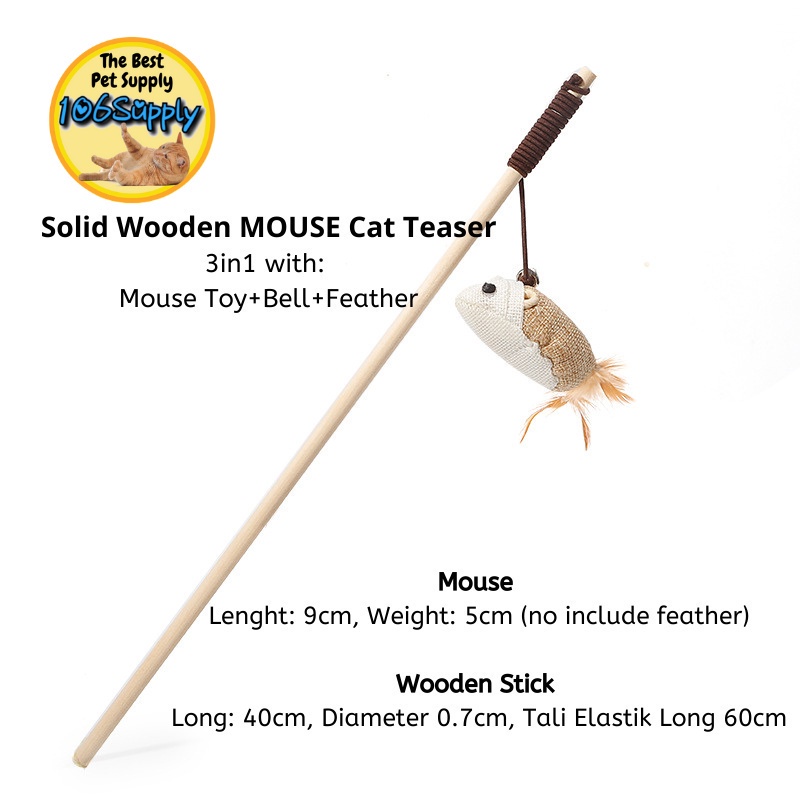 Mainan Kucing Cat Wooden Wire Stick Toy Teaser Bell Loceng Bulu Plush Toy Fun Cat Toy