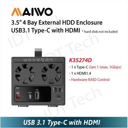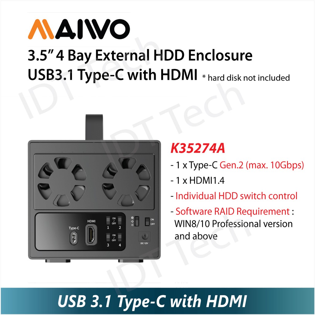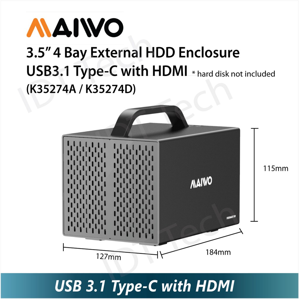 Maiwo 3.5" 4-Bay External HDD Enclosure USB3.1 Type-C with HDMI (K35274A / K35274D)