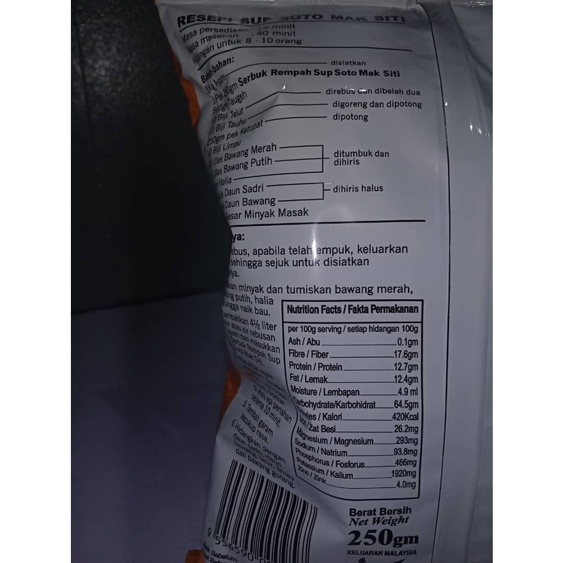 Mak Siti Serbuk Rempah Sup Soto (250 gm) / Rempah Soto paling sedap dan laris di pasaran / Menu open house senang -Large