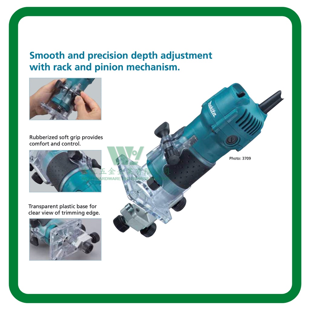 MAKITA 3709 1/4" Wood Trimmer Router 530W / wood router / mesin kayu / mesin kayu ukiran / mesin trimmer kayu