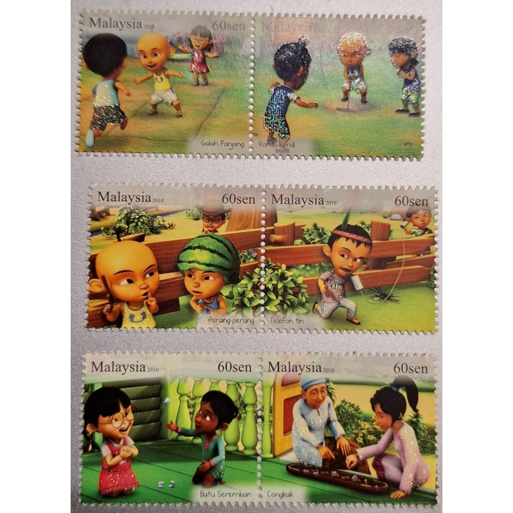Malaysia 2010 Traditional Games with Upin & Ipin Cartoon Sticker Stamp 6v + Miniature Sheet complete MNH set Setem Baru
