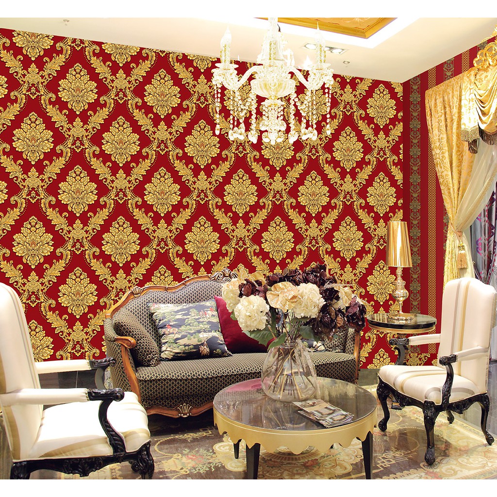 Malaysia 53cm Kerawang Embossed Korean Wallpaper 3D Modern Flower Glue Type Bedroom wallpaper wall paper Dinding