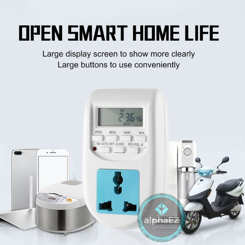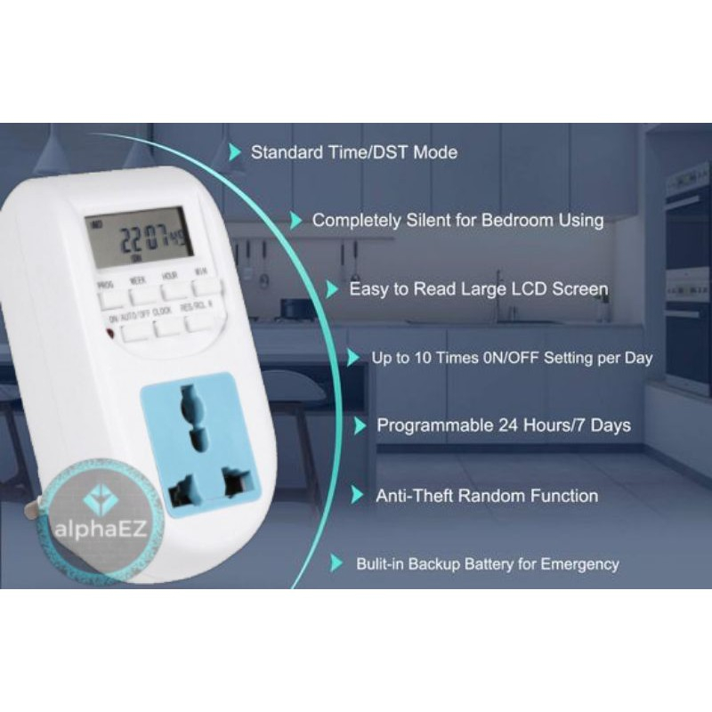 Malaysia Plug Socket Digital Timer Smart Life 24 / 7 Smart Home With 16 Preset Anti-theft ( Backup battery included )