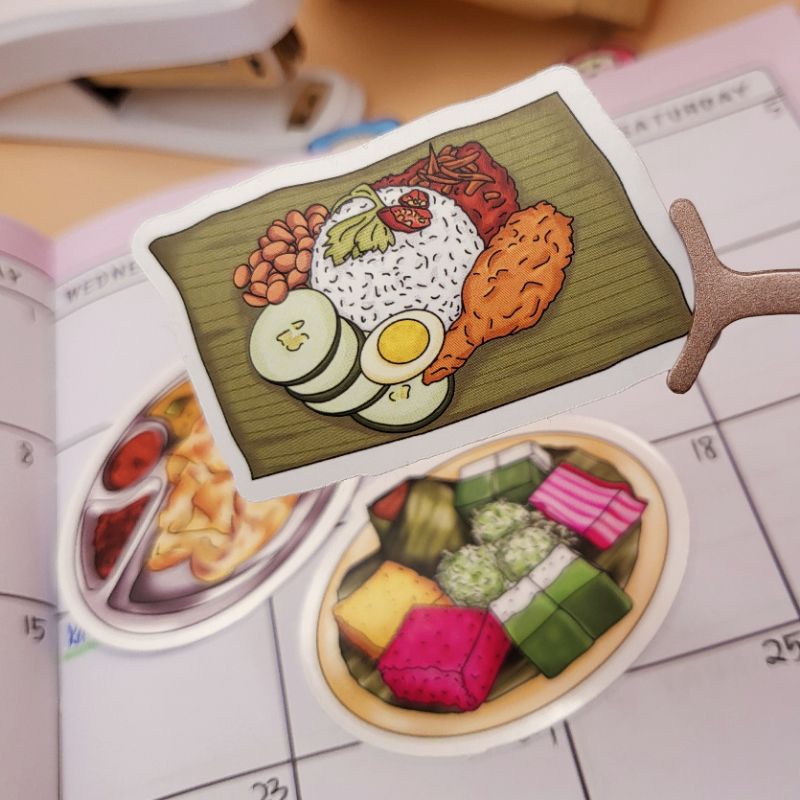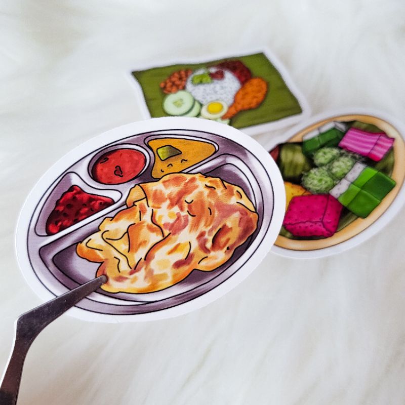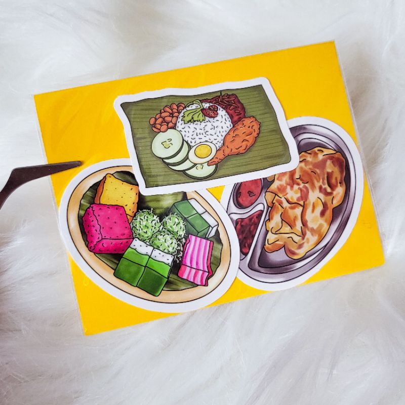 Malaysian Food Die Cut Sticker Pack (3 pcs) - Nasi Lemak, Roti Canai, Kuih Muih