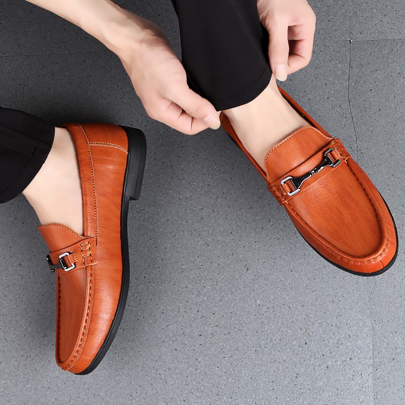 Male Casual Genuine Leather Loafer Shoes Kasut Kulit Lelaki Large Size 38~46 Men's Loafers High-level Business shoes Wedding shoes Doug Boat Leather Driving Shoes Slip On loafer