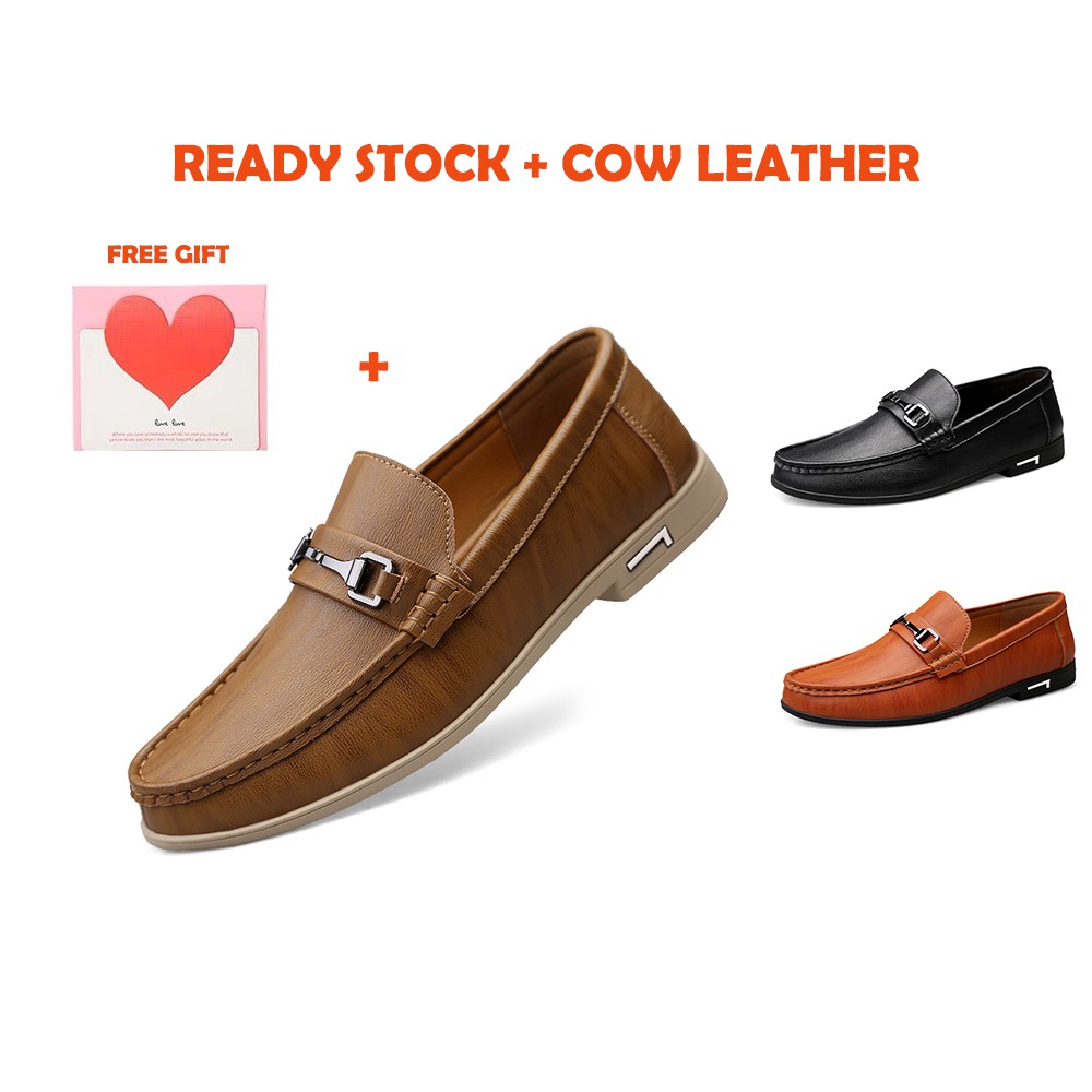 Male Casual Genuine Leather Loafer Shoes Kasut Kulit Lelaki Large Size 38~46 Men's Loafers High-level Business shoes Wedding shoes Doug Boat Leather Driving Shoes Slip On loafer