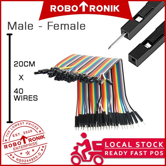 Male To Female | Jumper Wire Cable 40-Wires M-F - 10cm / 20cm / 30cm for Arduino Raspberry Breadboard Pin-Headers Sensor
