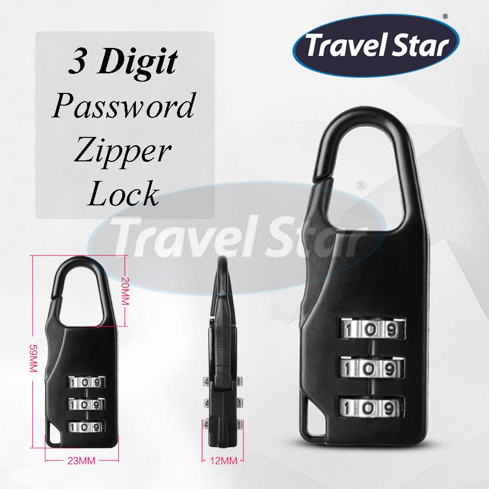 MallMart Travel Star Zipper Lock Classic Practical 3 Digit Password Combination Password Lock