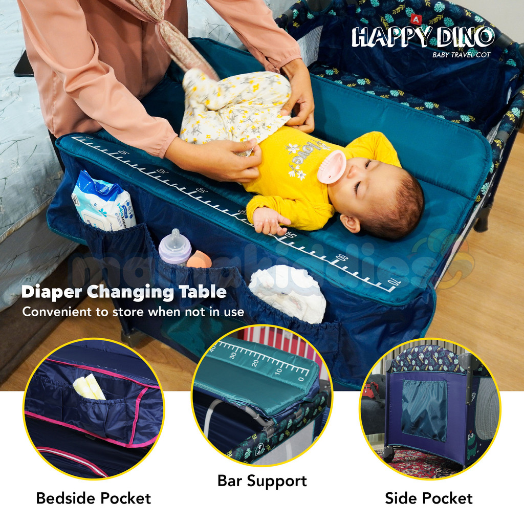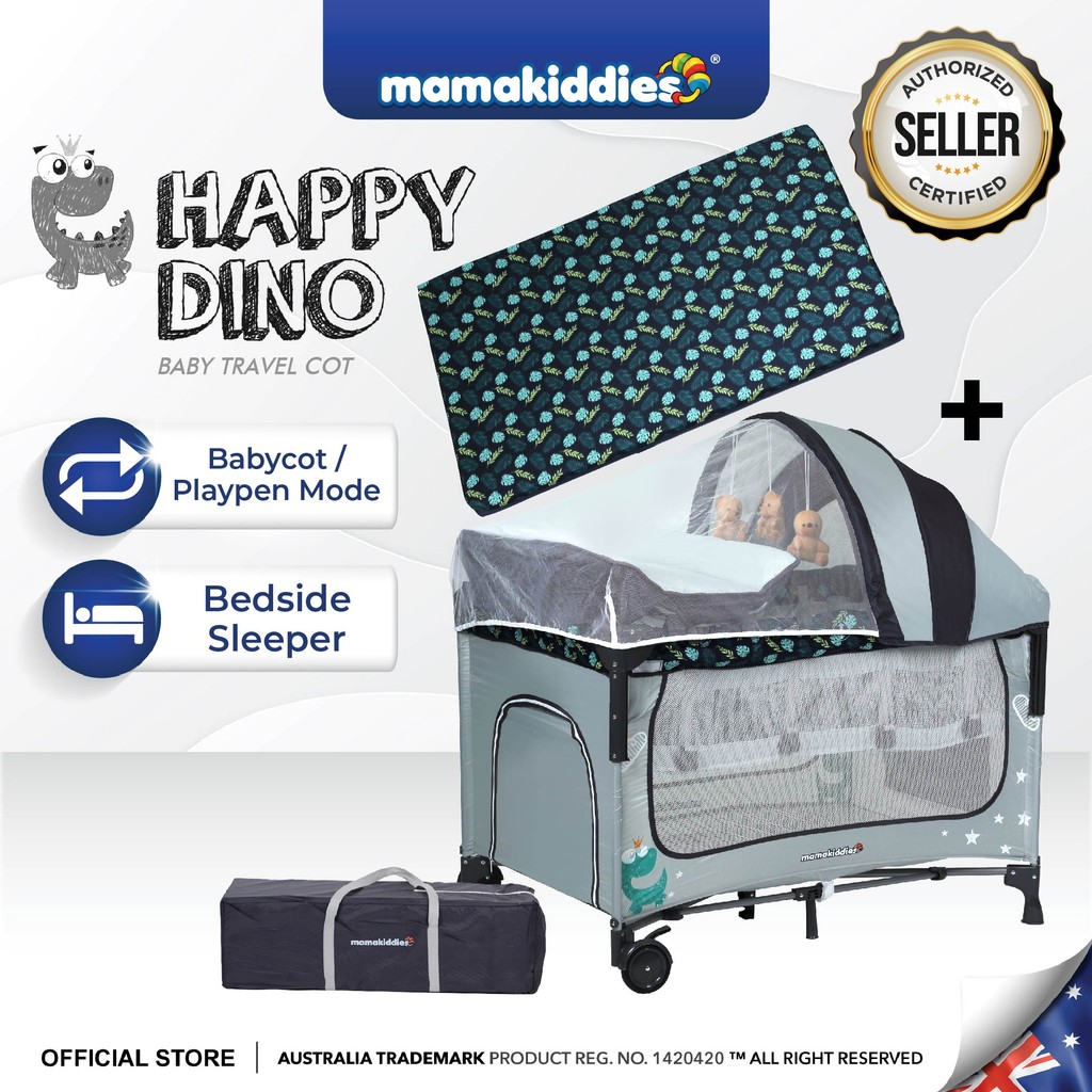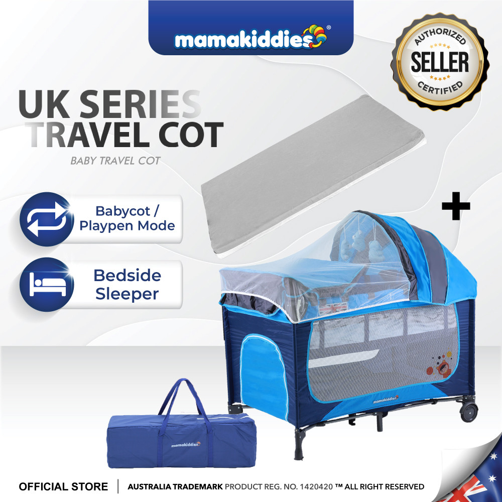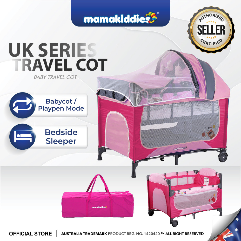 Mamakiddies Baby Cot 2 Level Portable Bed Playpen Travel Cot Stitching Large Bed Side Door Katil Bayi Foldable Cradle