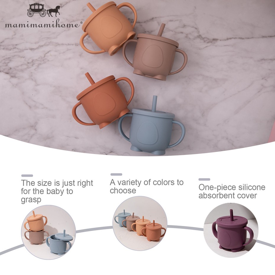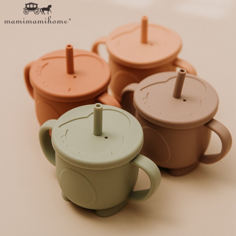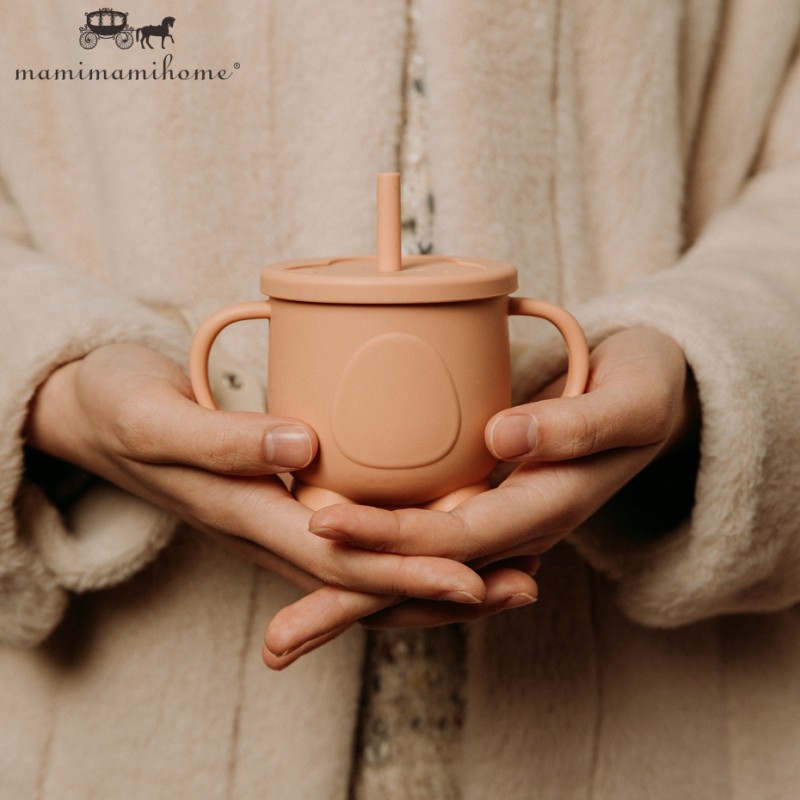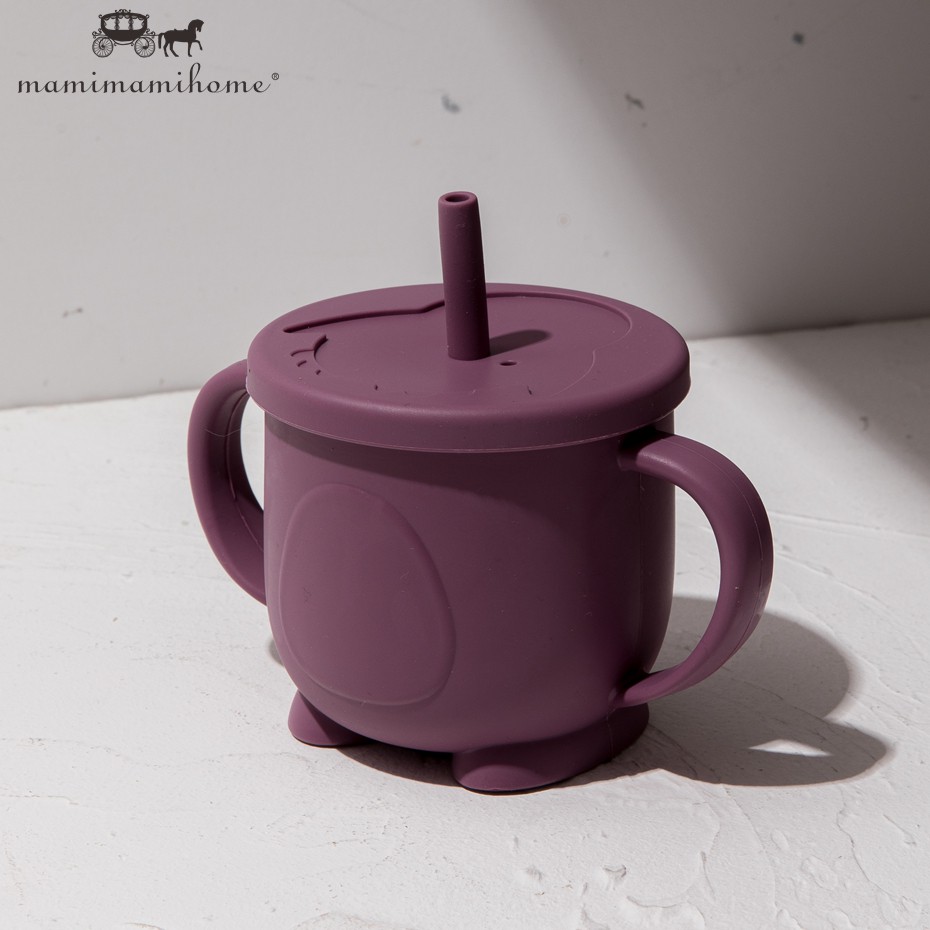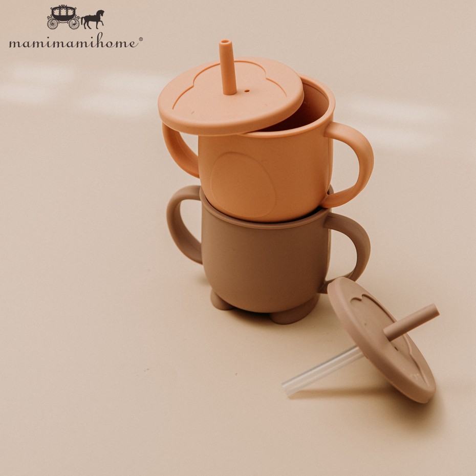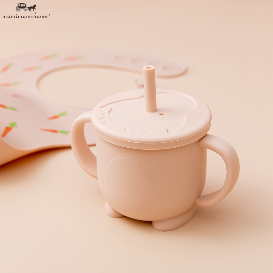 Mamimami Home Toddler Learning Cup 1Pc Bpa Free & Soft Silicone Sippy Cups with 2 Easy-Grip Handles & Straw Kids Skill Training Feeding Stuff 150ML