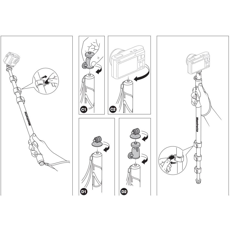 Manfrotto Compact Xtreme 2-In-1 Photo Monopod and Pole (26-MPCOMPACT-BK) (Original Manfrotto Warranty)