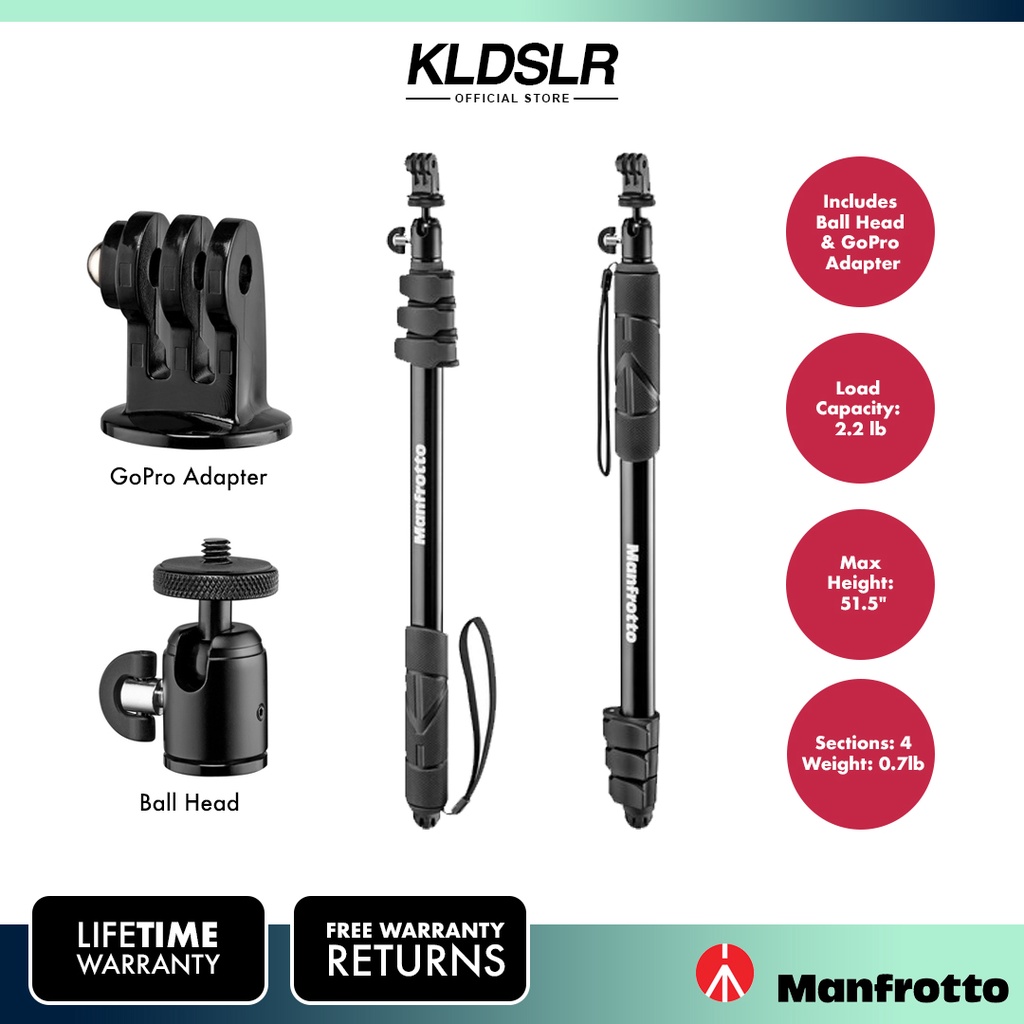 Manfrotto Compact Xtreme 2-In-1 Photo Monopod and Pole (26-MPCOMPACT-BK) (Original Manfrotto Warranty)