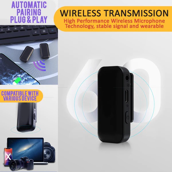 Mango_leong0123 Wireless Microphone System with Rechargeable Transmitter Receiver Lapel Lavalier Microphone