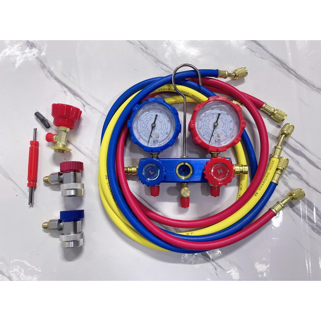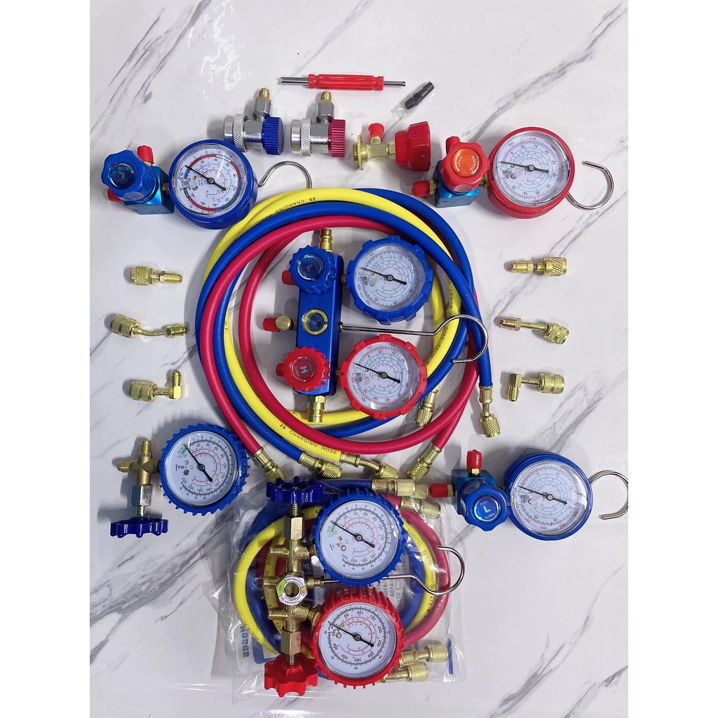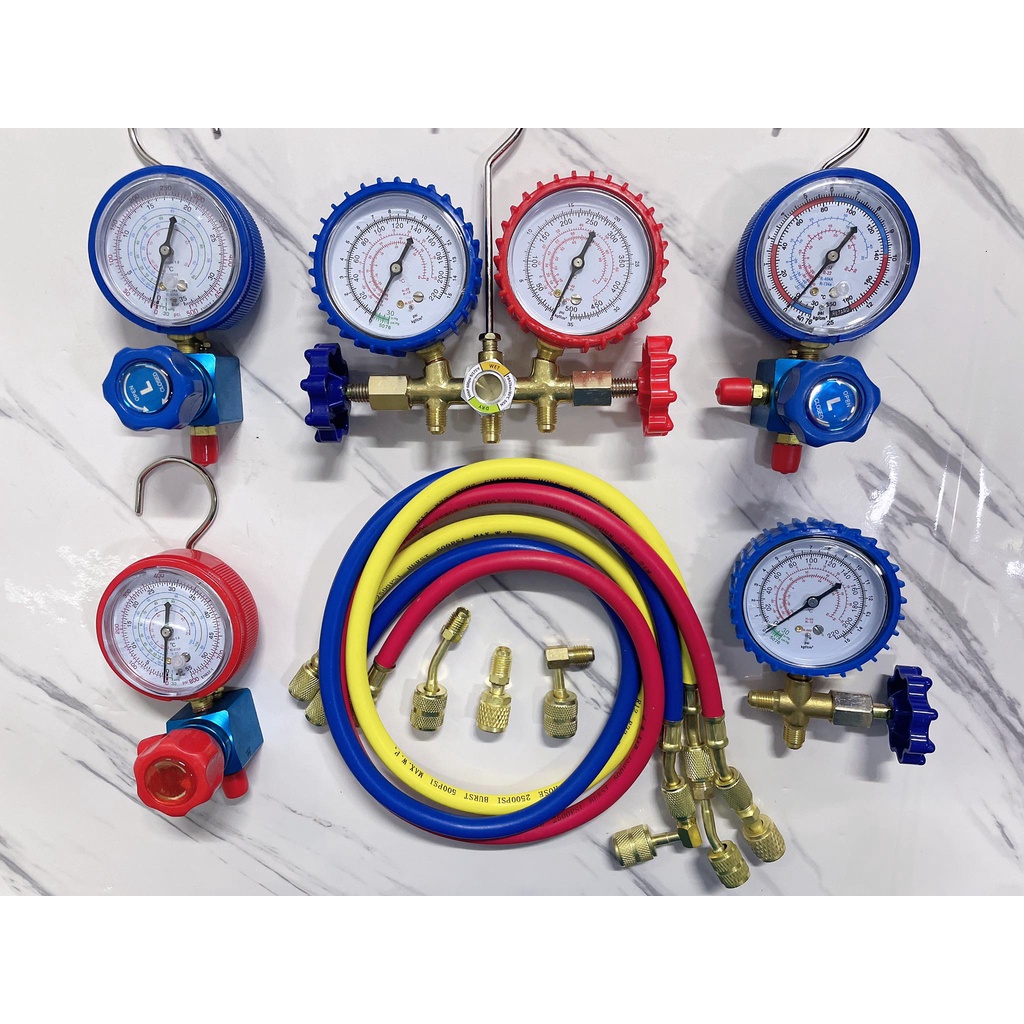 Manifold Gauge gas meter aircond with 3pcs Charging Hose Set R410a R32 R22 R134A R600 Air Cond Refrigerant car check psi