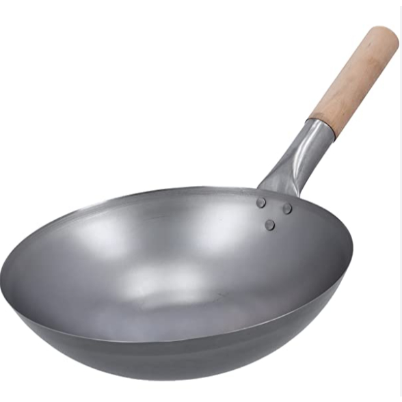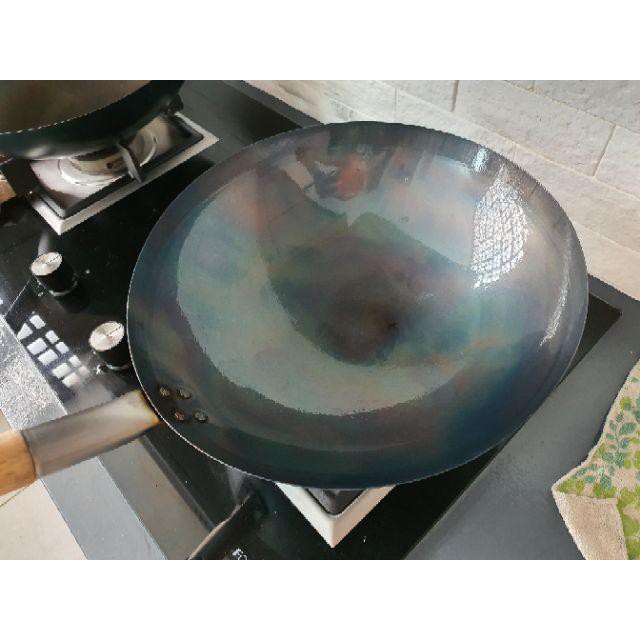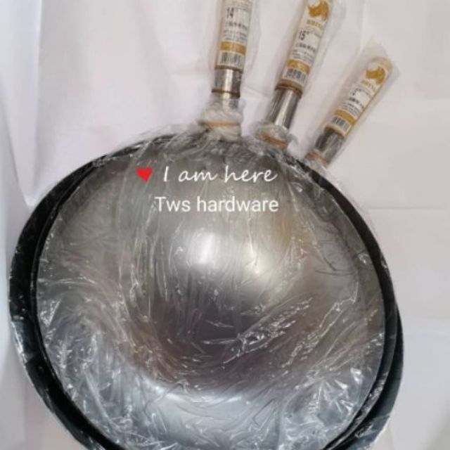 【13" - 17"】Deep Shape Steel Caldron Wok Kuali Besi Kuali Tomyam With Wood Handle Metal Wok Kuali Goreng Carbon Steel wok